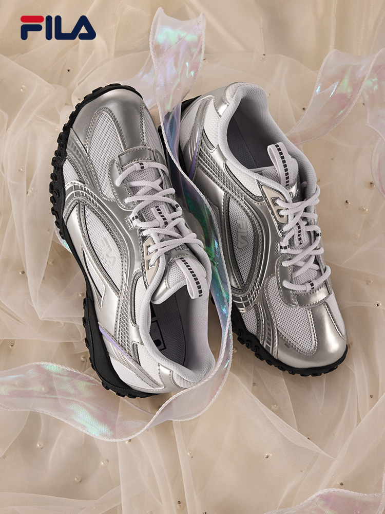 Pebble Shoes | Han Suhy's Same Style Fila Training Shoes for Women, Silver Sneakers, Thin-Soled Dad Shoes.