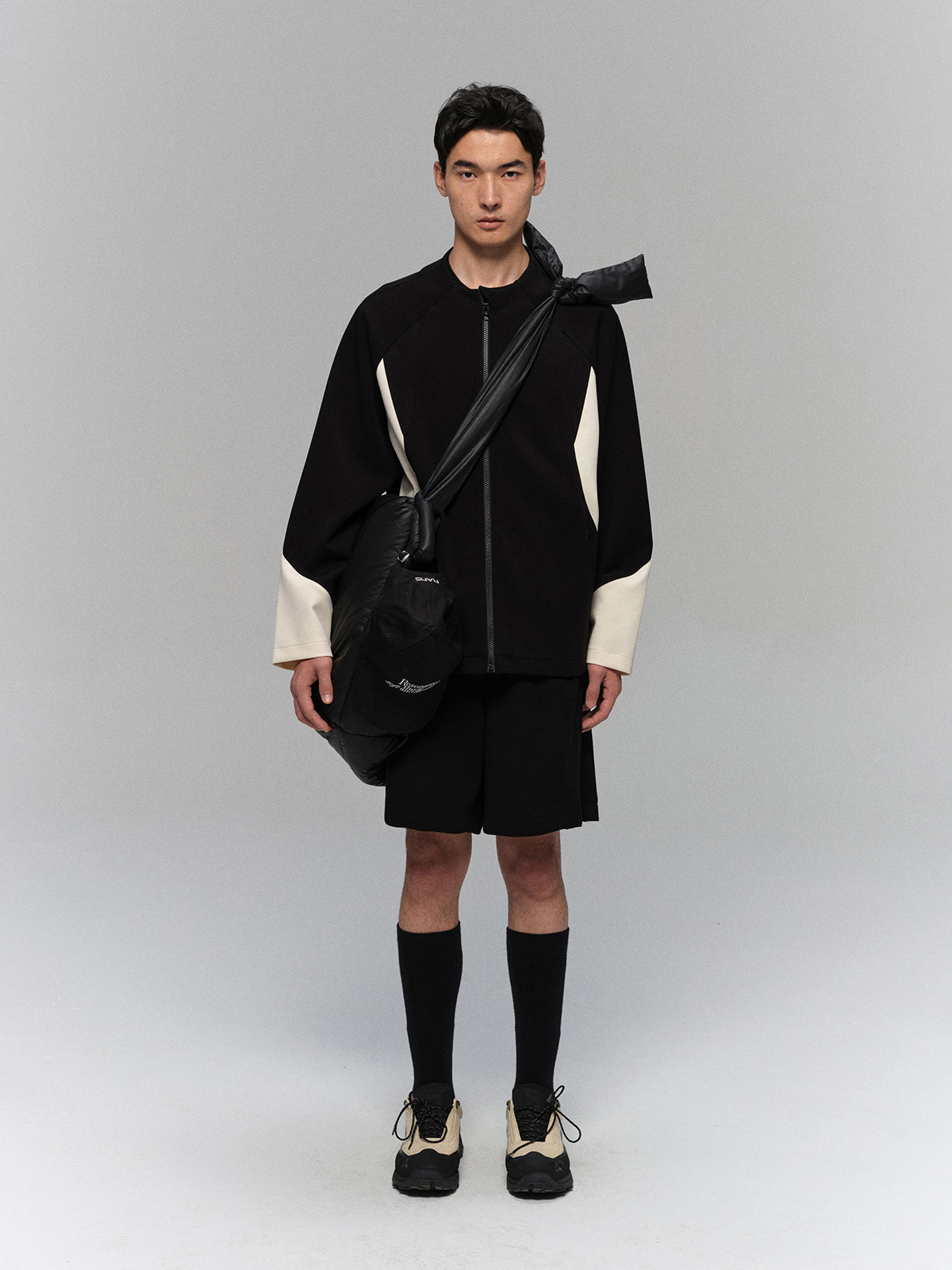 Nans Cotton Ammonia Stretch Cloud Air Layer Color Block Patchwork Zipper Sweatshirt/Sports Shorts Ns8G07