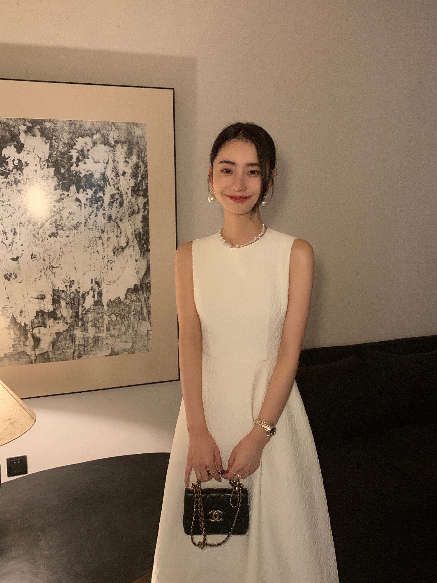 Pusumede High-End Vest Dress for Women, New French Style Long Dress, Sleeveless Waist-Cinching Textured Skirt