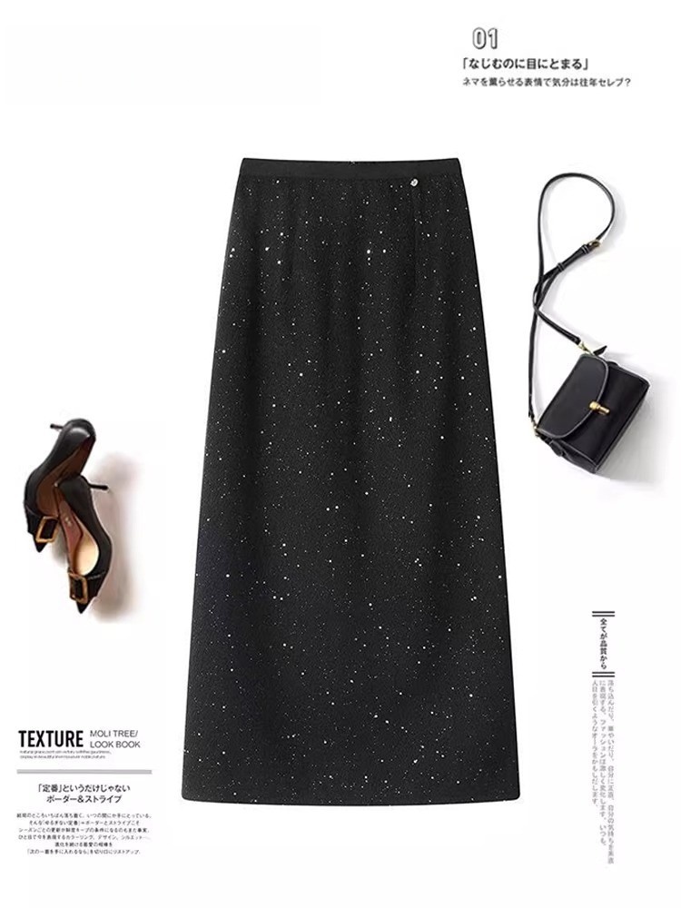 Sequin Skirt for Women, New Autumn 2025 Style, High-End Starry Sky Sparkling Straight A-Line Woolen Pencil Skirt