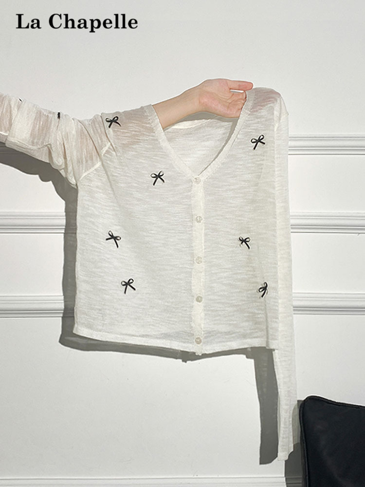 La Chapelle V-Neck Bow Ice Silk Cool Sun-Protective Cover-Up for Women, Summer Thin Camisole Outer Cardigan Top