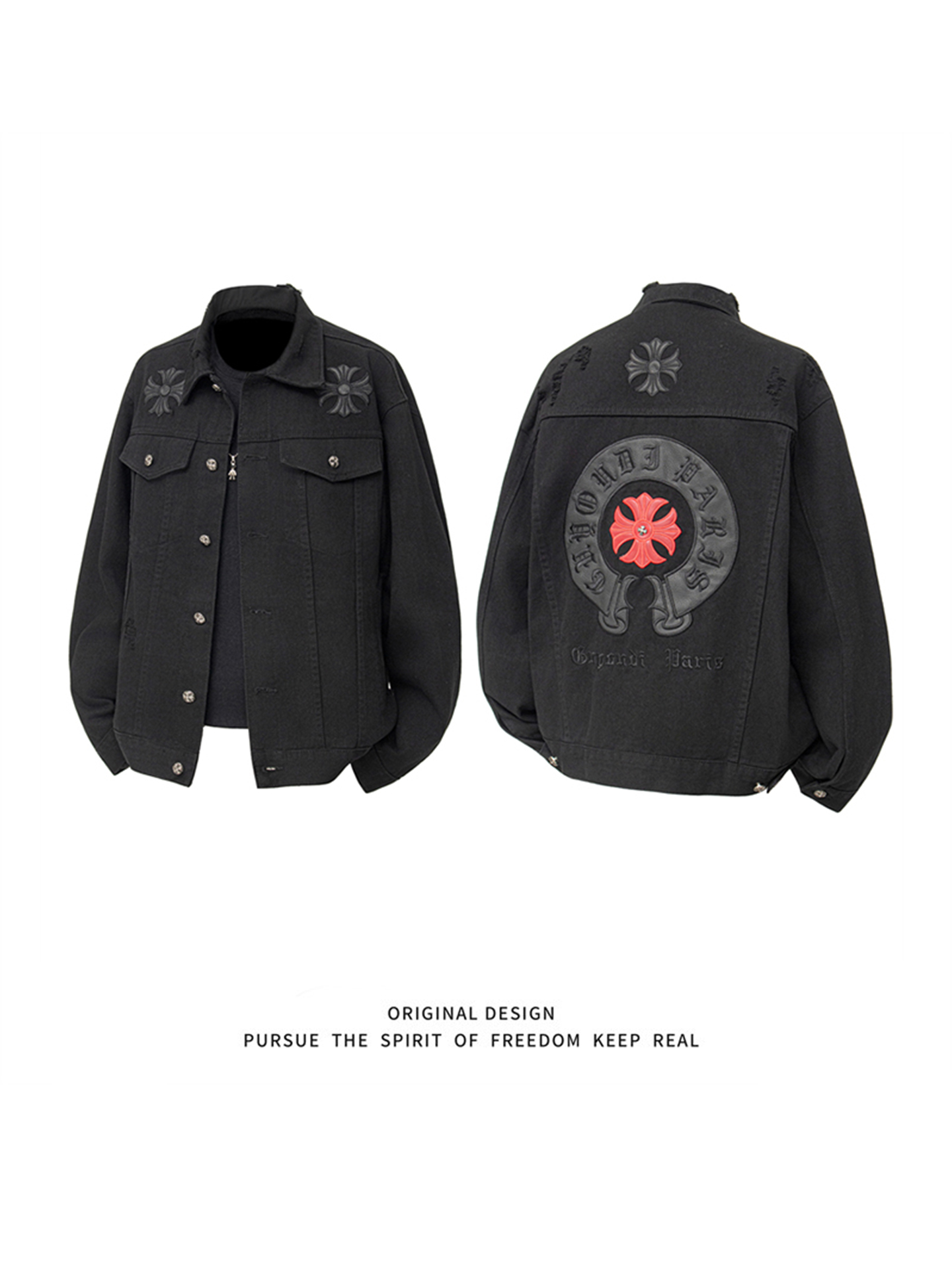 Cross Embroidered Denim Jacket for Men, Spring and Autumn Vibe, American Trendy Brand, Niche Design, Loose Fit, Distressed Jacket