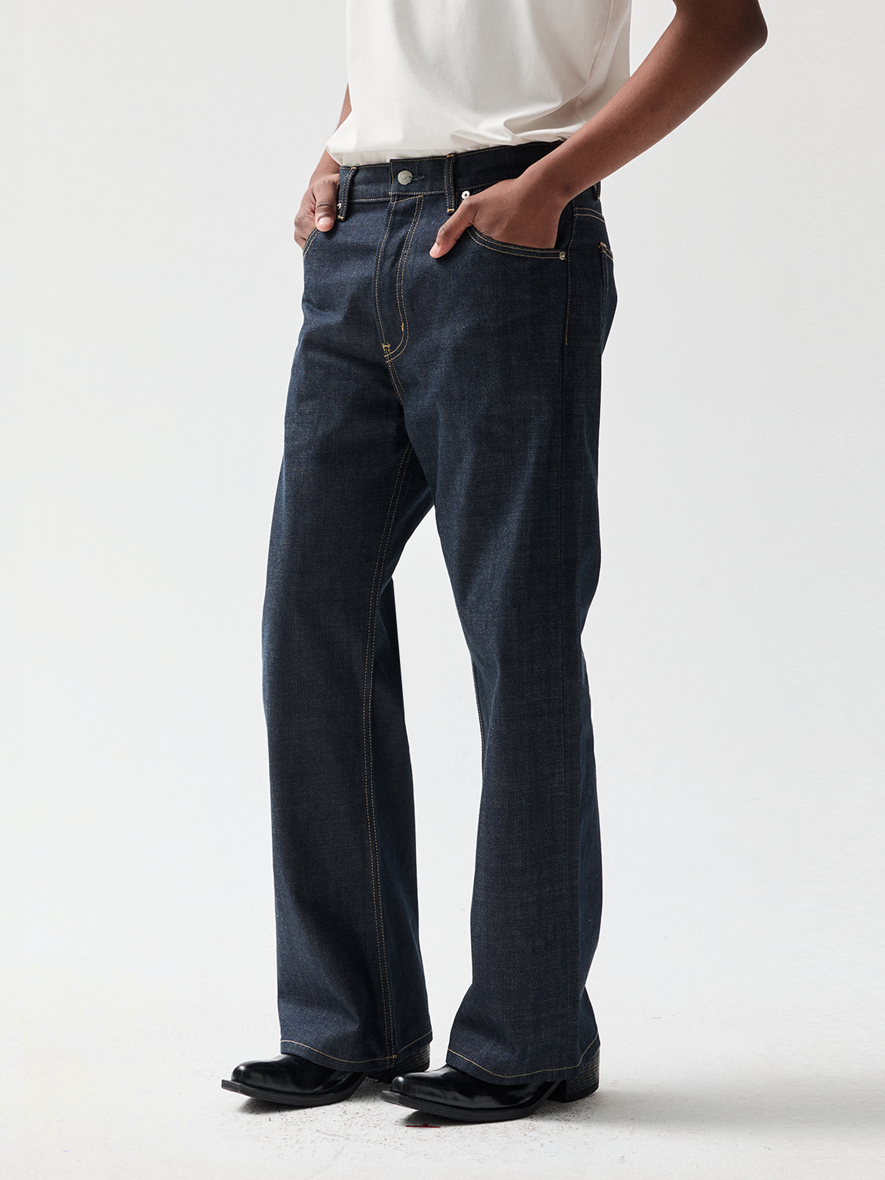 Azure Lisseur Raw Denim Flared Pants Solid Color Jeans Pure Cotton Dark Gray Scimitar Wide-Leg Pants
