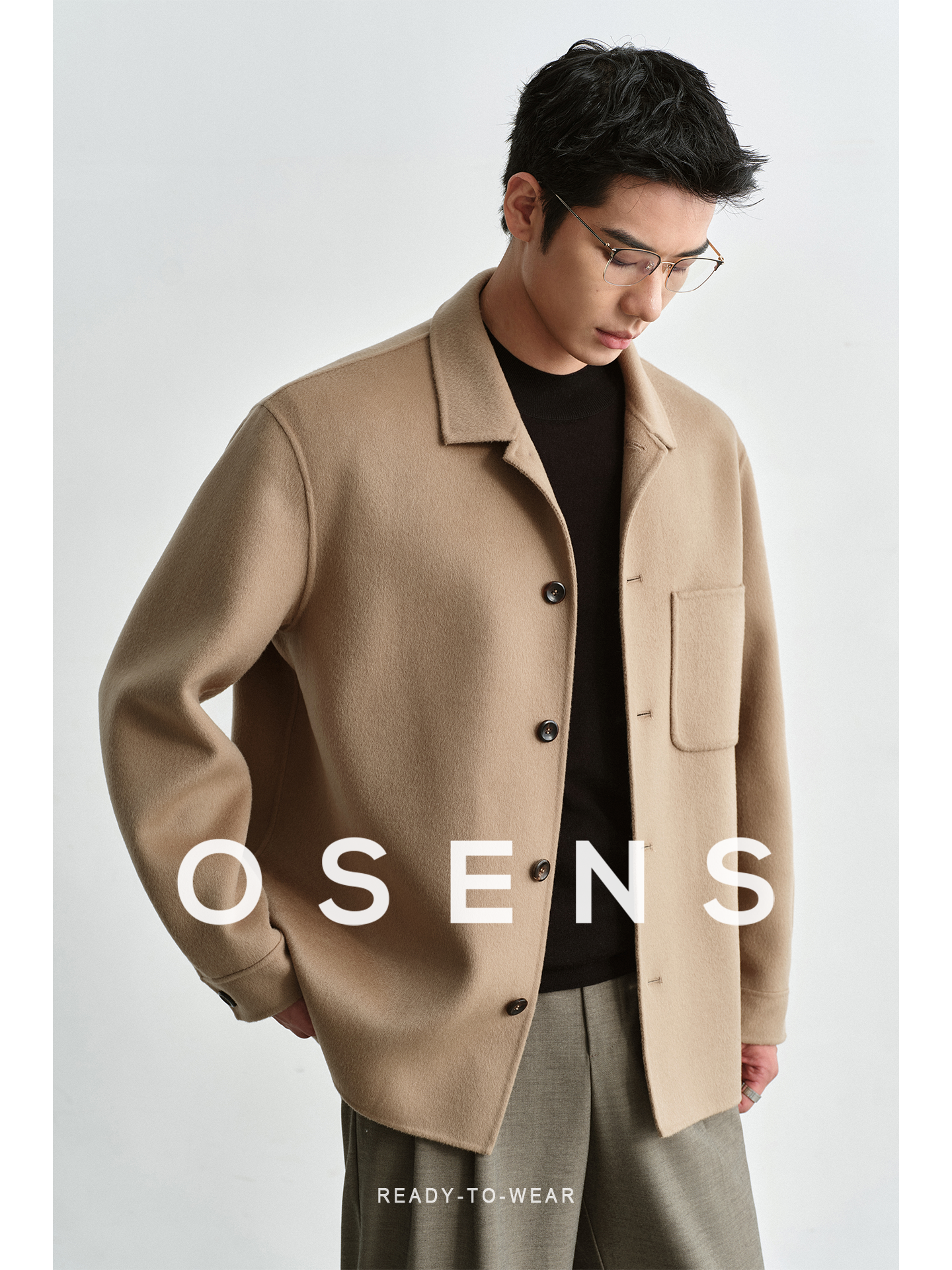 Osens Men's Clothing Heavyweight Imported Australian Wool Cashmere Lapel Straight Short Double-Sided Wool Coat for Men Winter