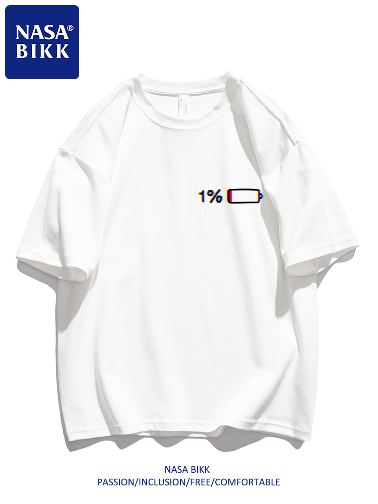 [Low Battery] Nasa Pure Cotton T-Shirt, American Style, Summer, Unisex, Couple, Round Neck, Loose Fit, Versatile, Half-Sleeve