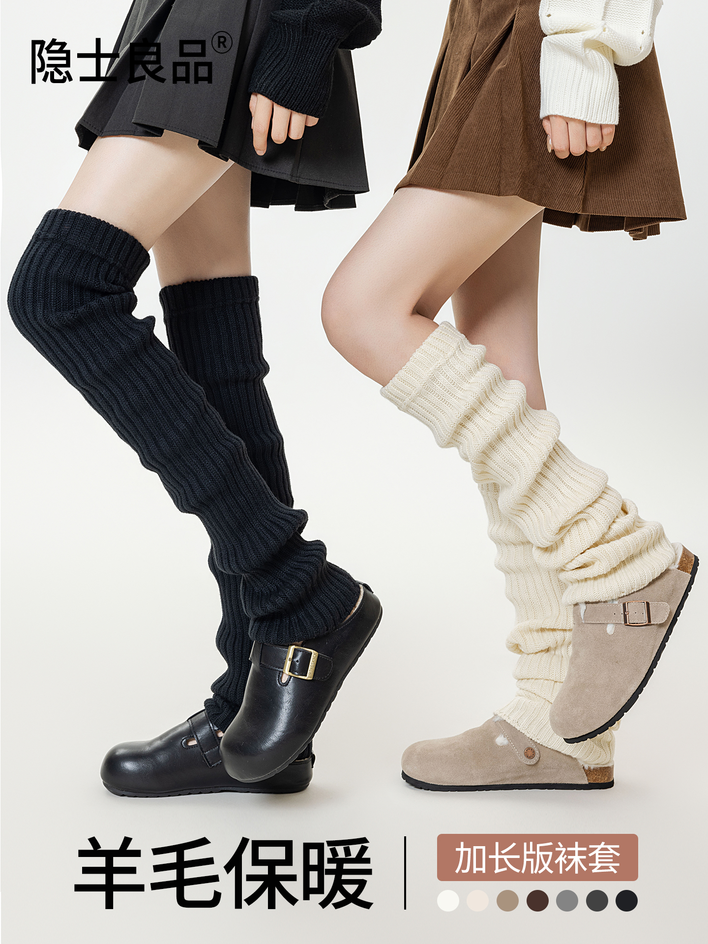 Wool Over-The-Knee Socks, Stacked Style for Women, Autumn and Winter Knee Protection, Y2K Long Socks, Non-Slip, Warm, Slimming, Gray Leg Warmers
