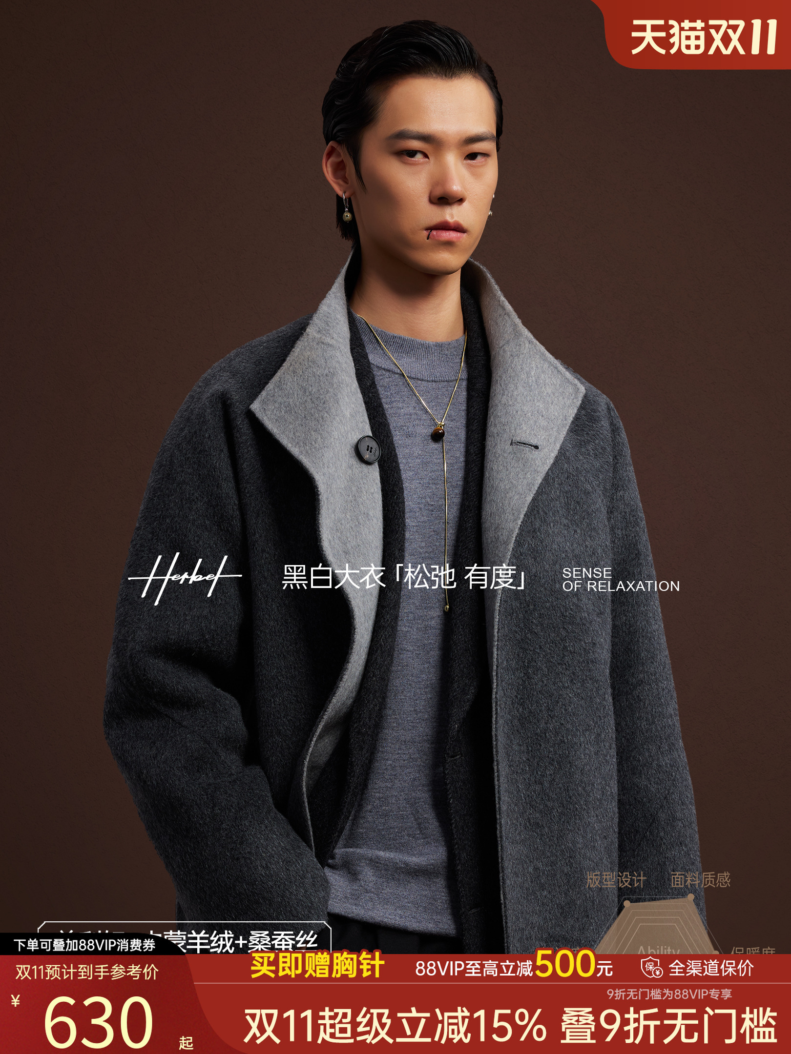 Herbel/Black and White Woolen Coat for Men 2025 Winter Black Label Cashmere Reversible Cashmere Coat Jacket
