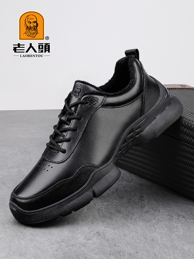Old Man's Head Men's Shoes 2025 Winter New Style First Layer Cowhide Men's Business Casual Shoes with Fleece Lining for Warmth and Soft Sole Leather Shoes