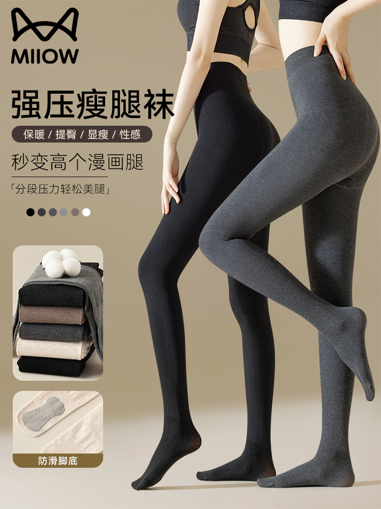 Catman Gray Base Pantyhose for Women, Suitable for Spring, Autumn, and Winter, Non-Slip, Suitable for Wearing Outside, Fleece-Lined, Thick, Plus Size, Black, Pressure Slimming Leg Socks