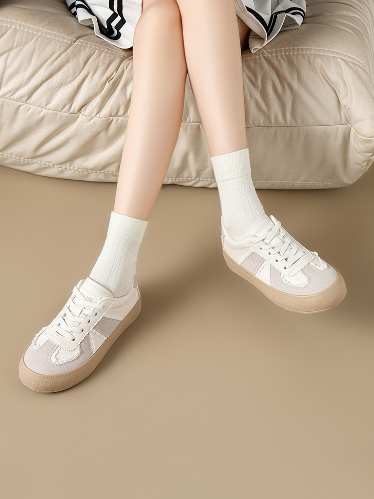 [Sheii Su Yinyin] Little Chubby Girl~ Round-Toe Velcro Thick-Soled Height-Increasing Casual Sneakers Women's White Shoes