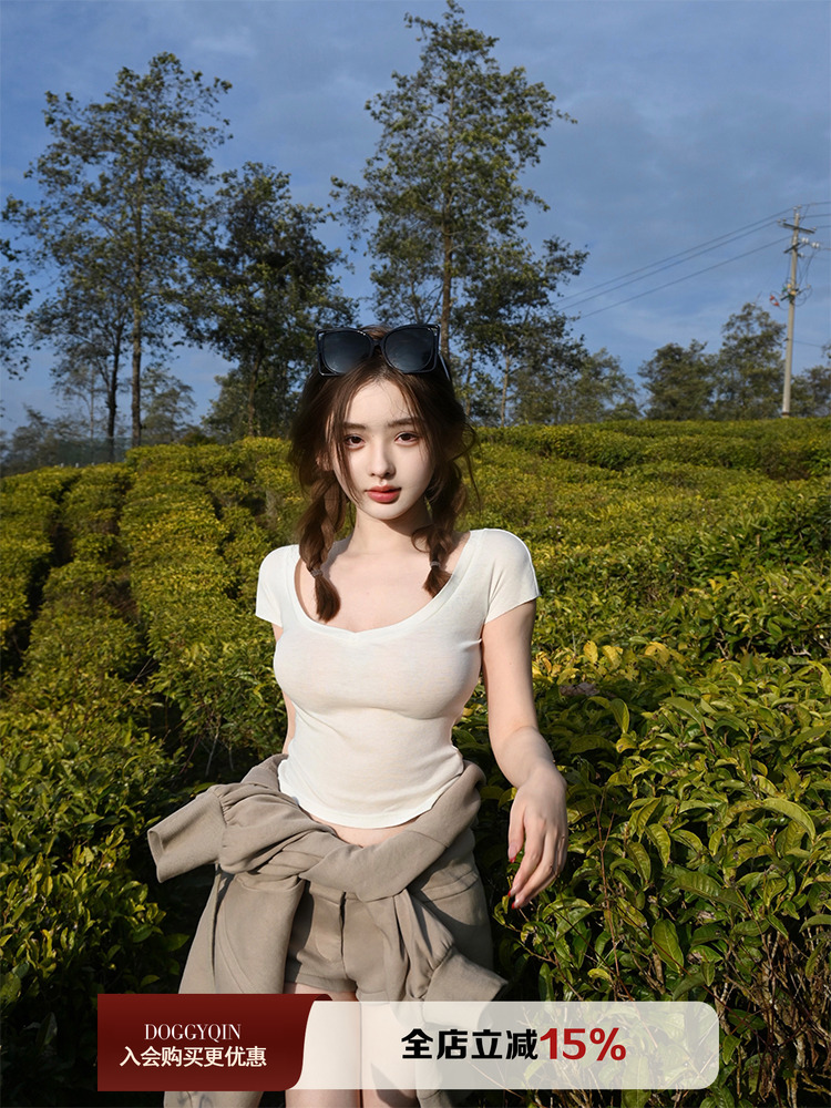 Doggyqin Highly Recommends! Fairy-Like Little T-Shirt with a Pure and Alluring Feel, Slightly Sheer, V-Neck, Tencel White Short-Sleeve Top