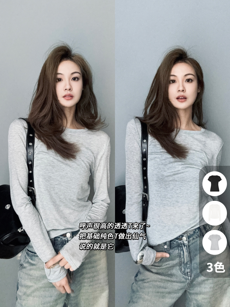 Meiyang Meiyang Translucent t Lenzing Tencel | See-Through Base Layer for Layering, Round Neck, Long/Short Sleeves