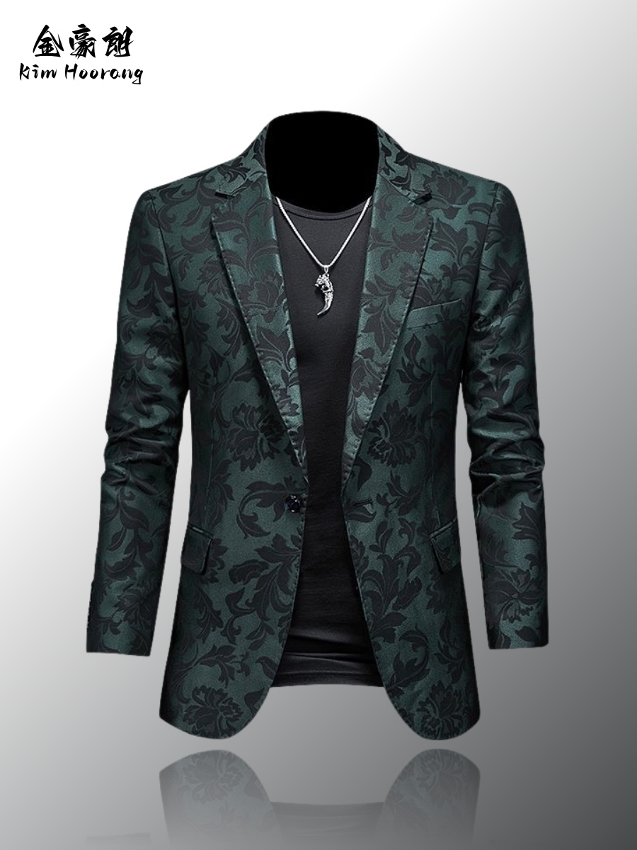 Big Brand Style Men's Suit for Autumn, Trendy and Fashionable, Velvet Jacquard Slim Fit Single-Breasted Jacket, Young Men's Business Casual Suit
