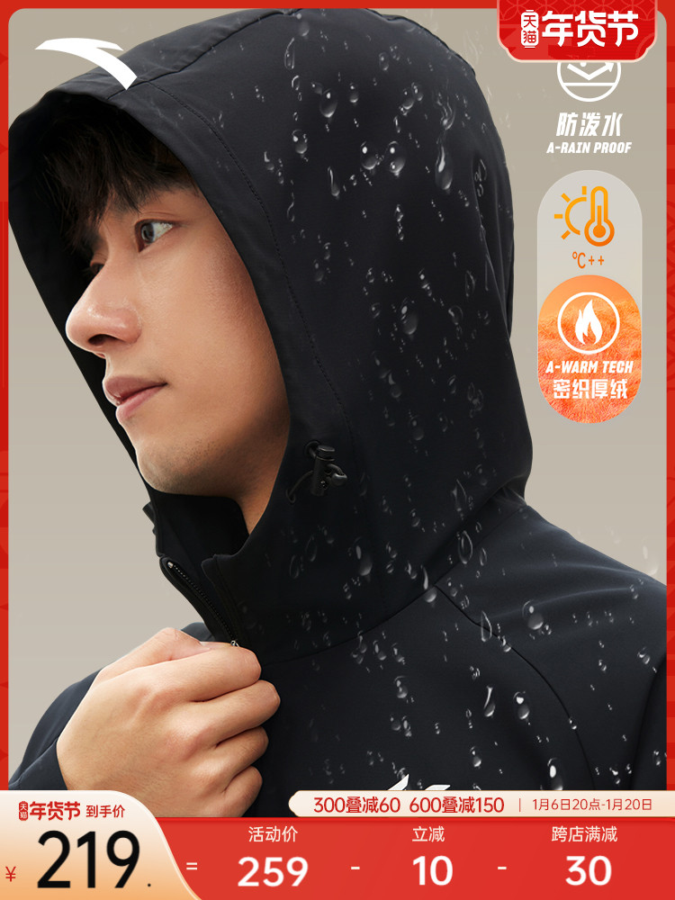 Anta Water-Repellent Outwear 丨Weatproof Fleece-lined jacket Men Winter New arrival Hiking Black Outwear Sports Tops