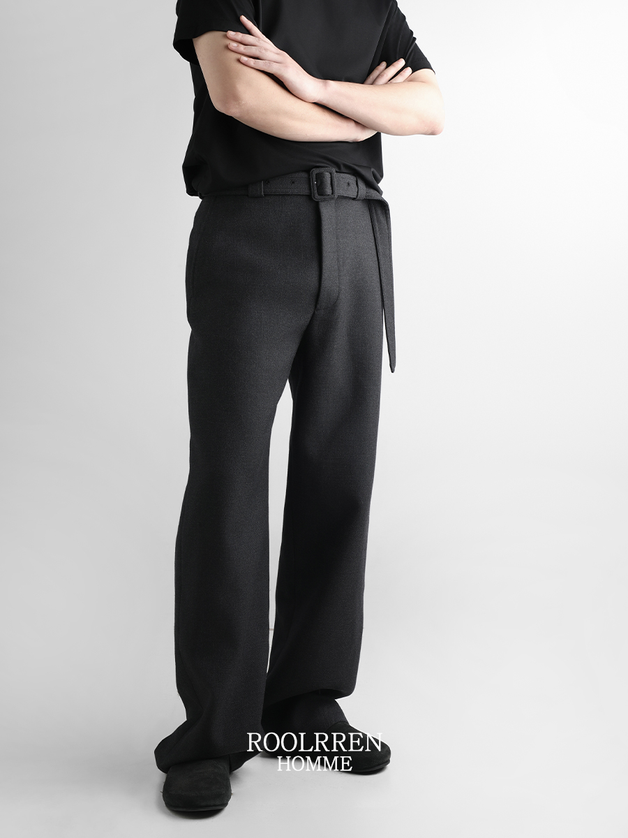 Roolrren24Fw thickened Wool Blended Detachable Belt Straight-leg Loose Silhouette Fancy Casual Trousers
