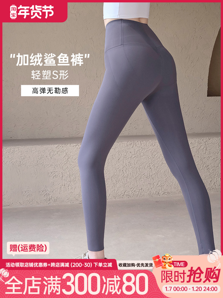 Shark Pants Women's Autumn and Winter 2024 New arrival Outwear Fleece-lined Belly Controlling Butt Lifting Slimming Bottoming Barbie Fitness Yoga Pants