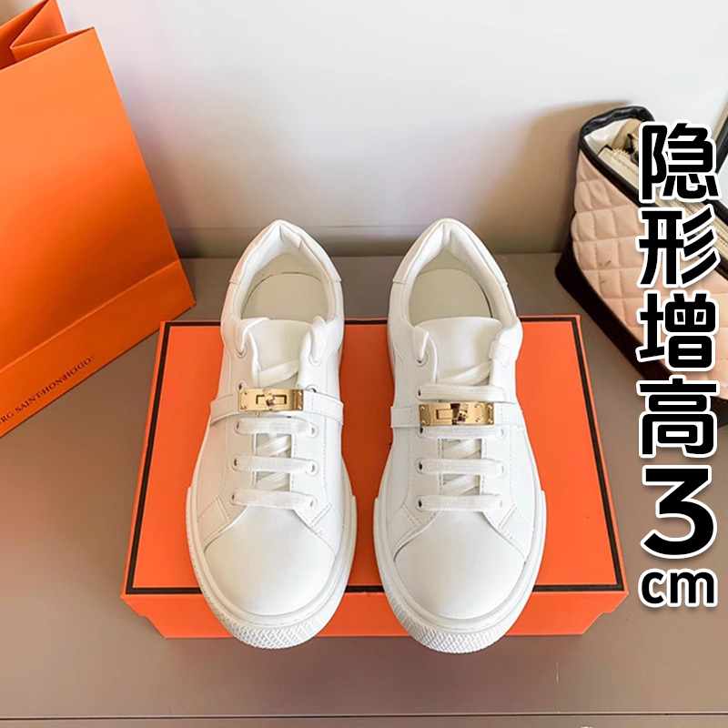 Hong Kong 2024 New arrival Metal Buckle Thick Sole Fashion Flats White Shoes Women's Casual Sports Shoes Shoelace Sneakers Flats