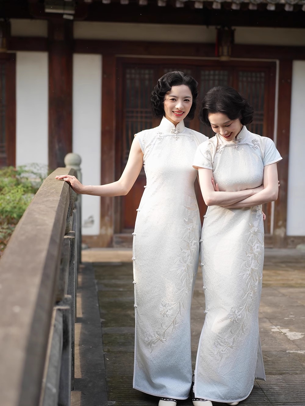 Moon White Lily Fragrance | Limited-Time Offer: Plain-Cut Cheongsam in Silk Blend 30S, Floor-Length, Embroidered with Blue Lilies, Dry Clean Only.