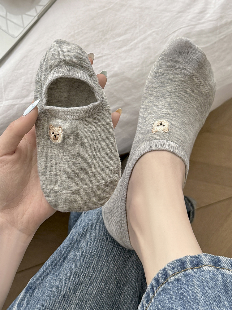 Gray Bear Socks, Korean Style No-Show Socks for Women, Pure Cotton, Non-Slip, Won'T Fall Off, New Autumn Style, Low-Cut Sports Socks