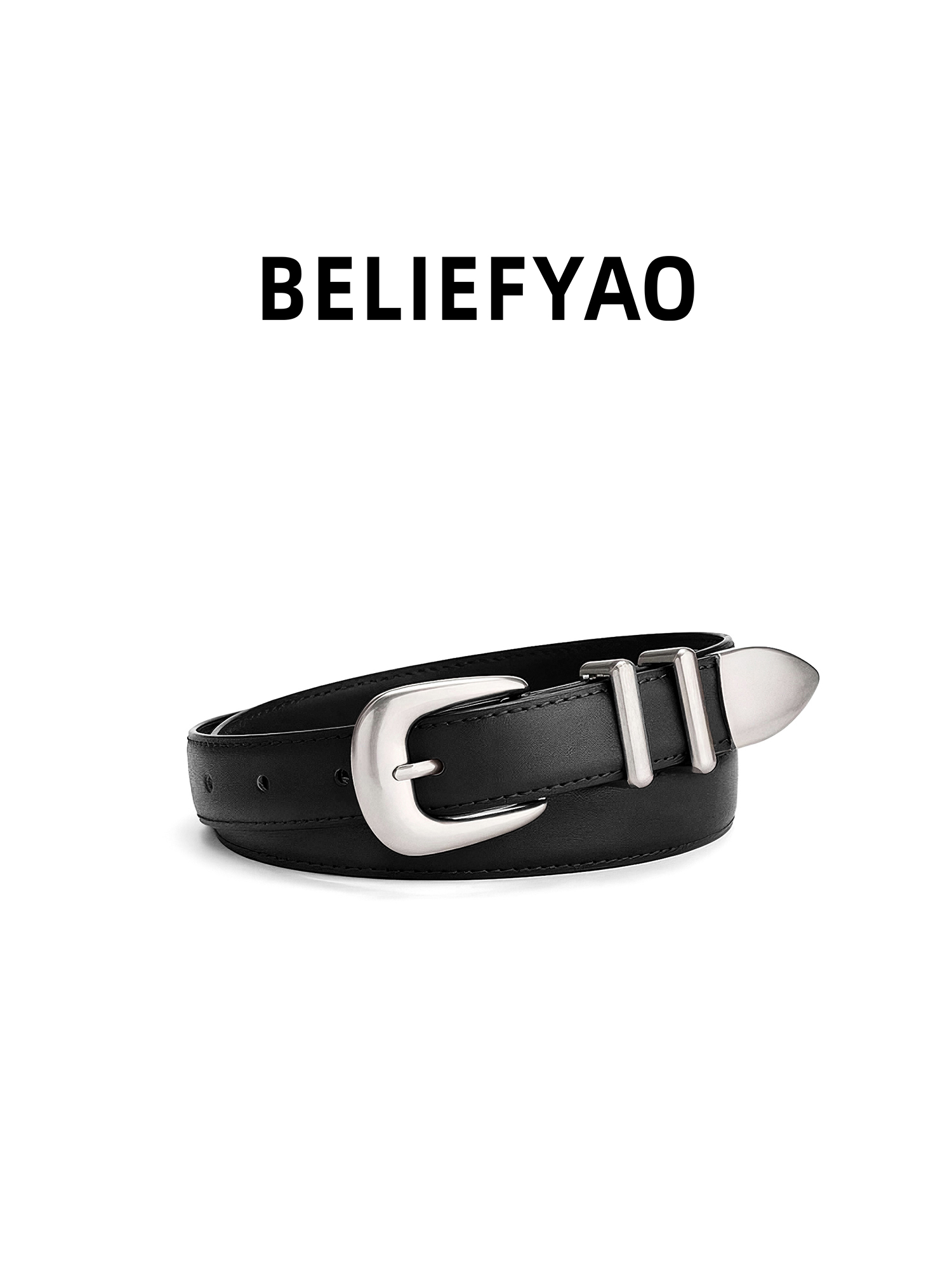 Beliefyao Original Genuine Leather Belt, Thin Cowhide Design, Niche Cleanfit Belt for Men and Women