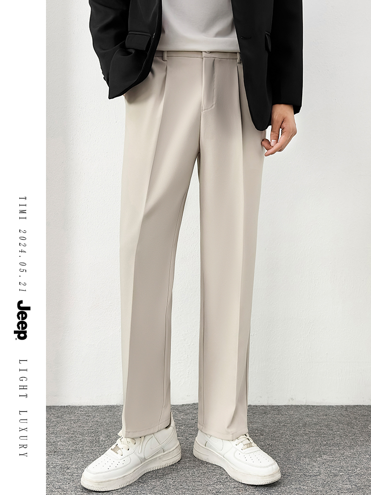 Jeep Straight-Leg Wrinkle-Free Khaki Dress Pants for Men, 2025 Autumn and Winter, Loose Fit, High-End Drape, Commuter Casual Long Trousers