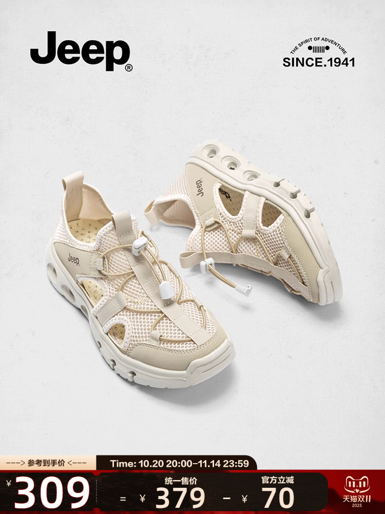 Jeep Hollow Breathable Mesh Sneakers for Women, Casual Summer New Style, Lightweight Slip-On Outdoor Quick-Drying River Sandals