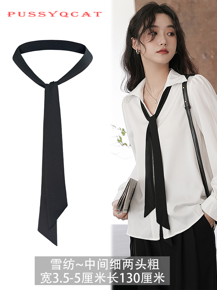Chiffon Bow Tie, Slender Flowing Collar Decoration, Matching Shirt, Silk Scarf, Casual Tie, Versatile Tie for Women