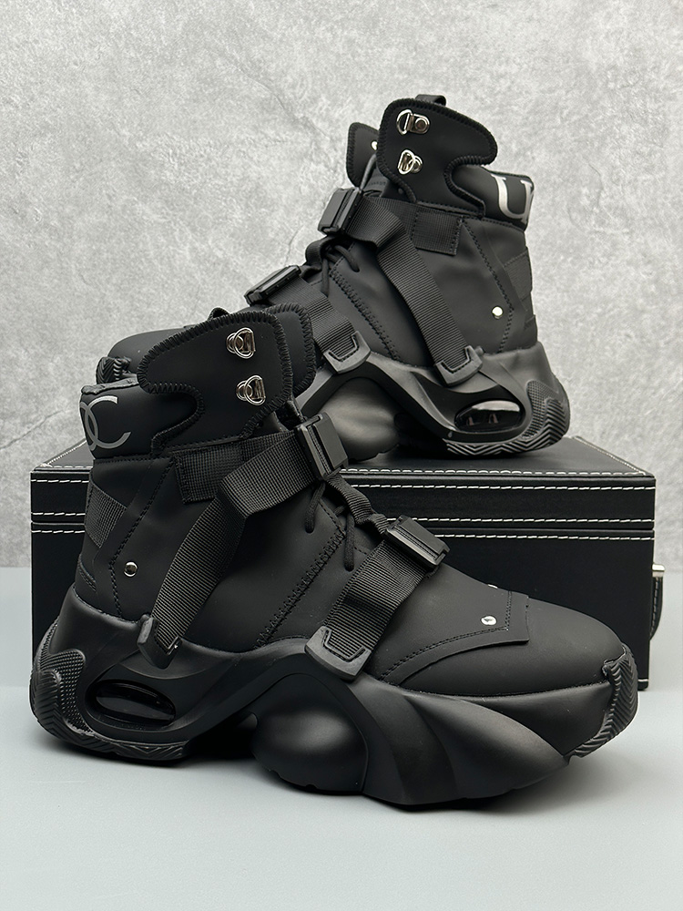 European Style Men's High-Top Shoes 2025 Autumn and Winter Trendy Black Warrior Popular Dad Shoes Super Hot Height-Increasing Sneakers