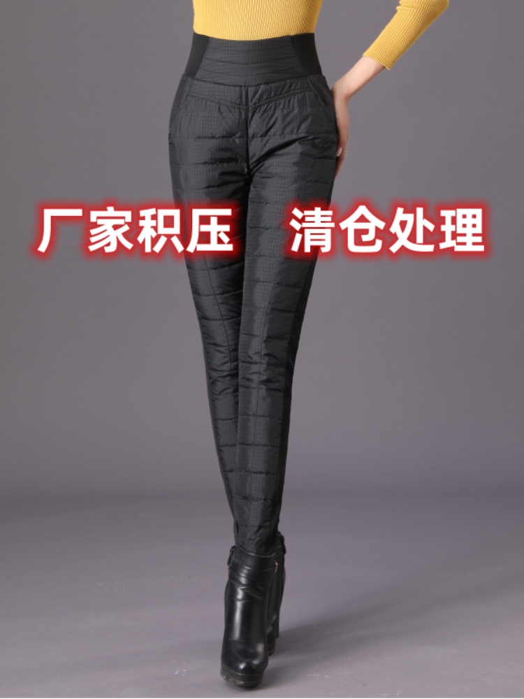 Women's down Pants for Outdoor Wear, Fleece-Lined, Thickened, Windproof, Warm, Slim Fit, High-Waisted, Fashionable, Clearance Sale, Women's Cotton Pants