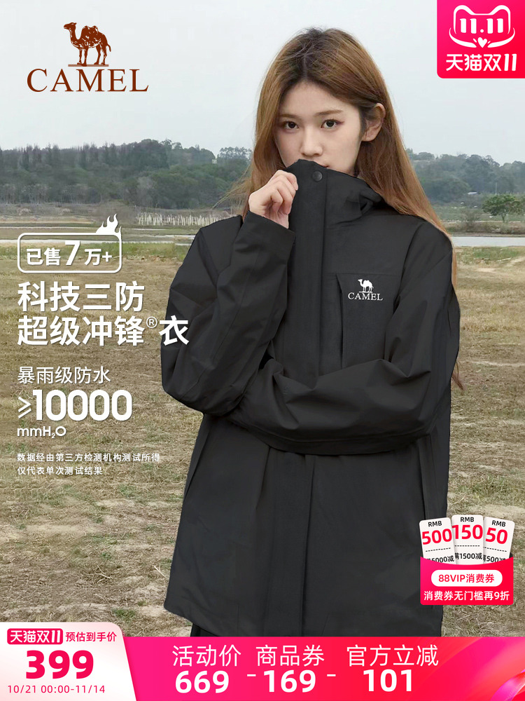 Camel Outdoor Jacket for Men and Women, Three-In-One Black Coat, Winter Windproof and Waterproof, Suitable for Tibet, Three-Proof Mountaineering Clothing