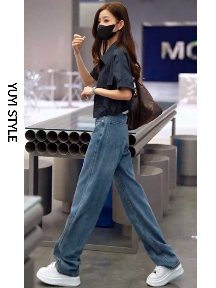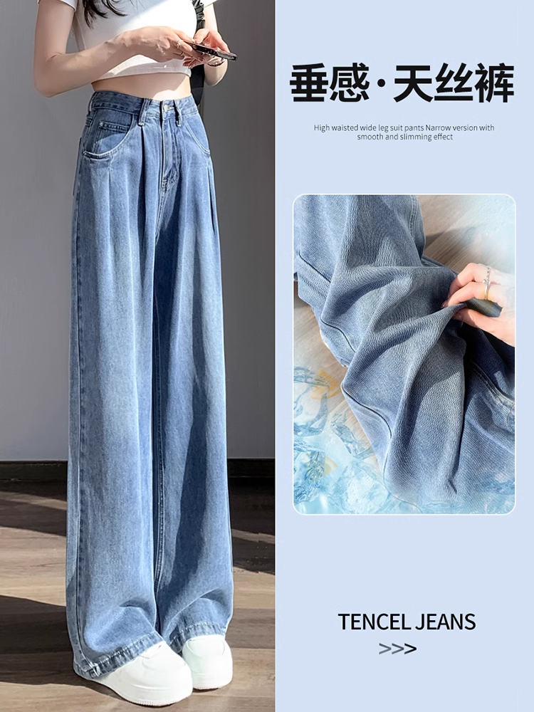 High-Waisted Loose-Fitting Tencel Denim Pants for Women in Summer, Slimming for Pear-Shaped Body, Thin Ice Silk Wide-Leg Floor-Length Pants