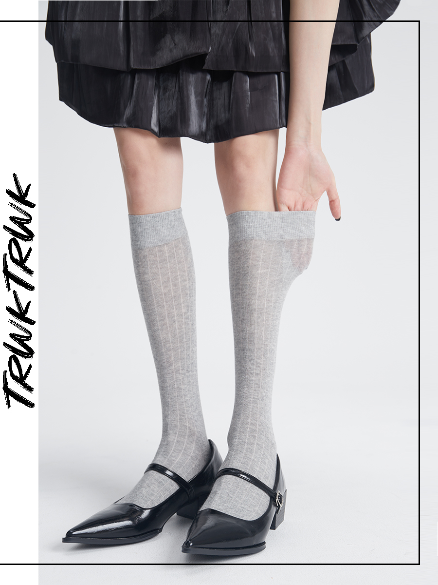 Summer Thin Gray Miu-Style Vertical Striped Long Socks for Women, New Black Slimming Japanese Jk Calf Socks
