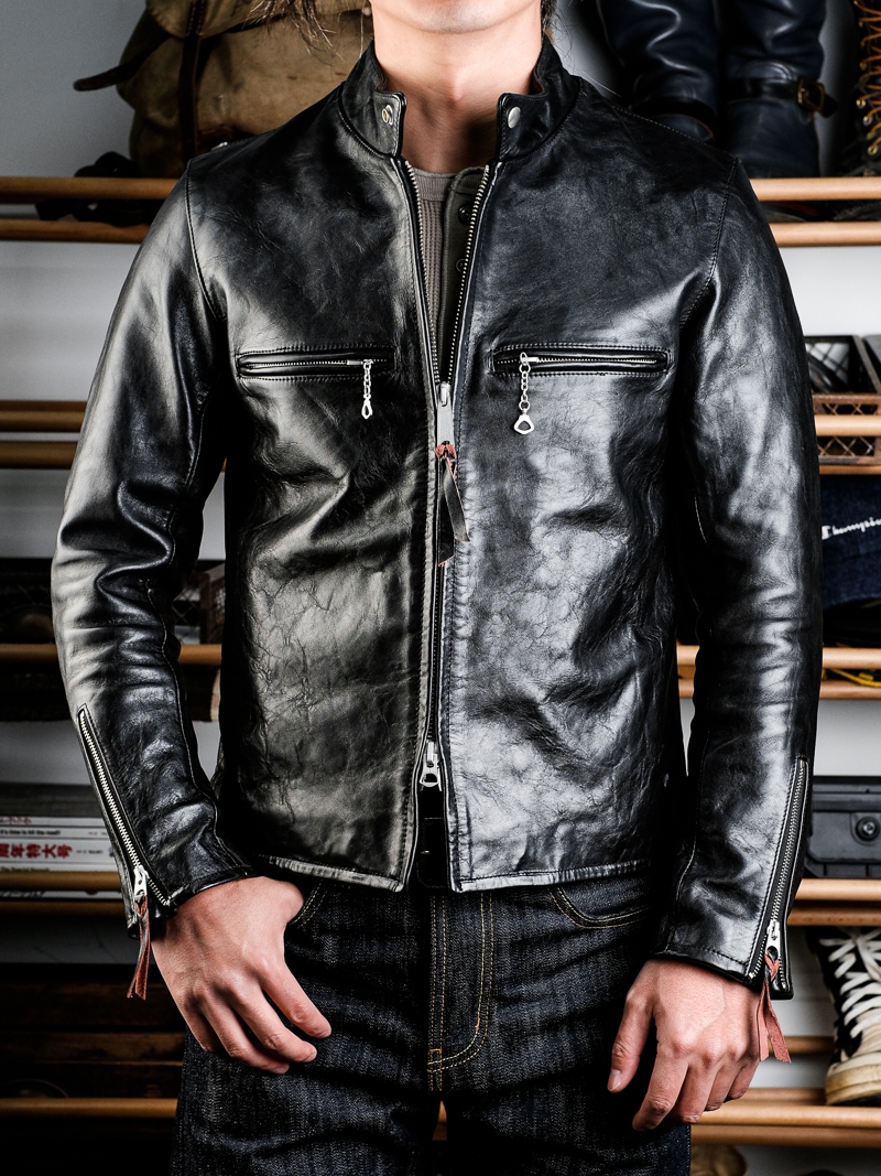 J100 Motorcycle Leather Jacket, Padua Tea Heart Horse Leather, Blood Red Special Goat Vintage Jacket, Full Leather on the Back and Sleeves