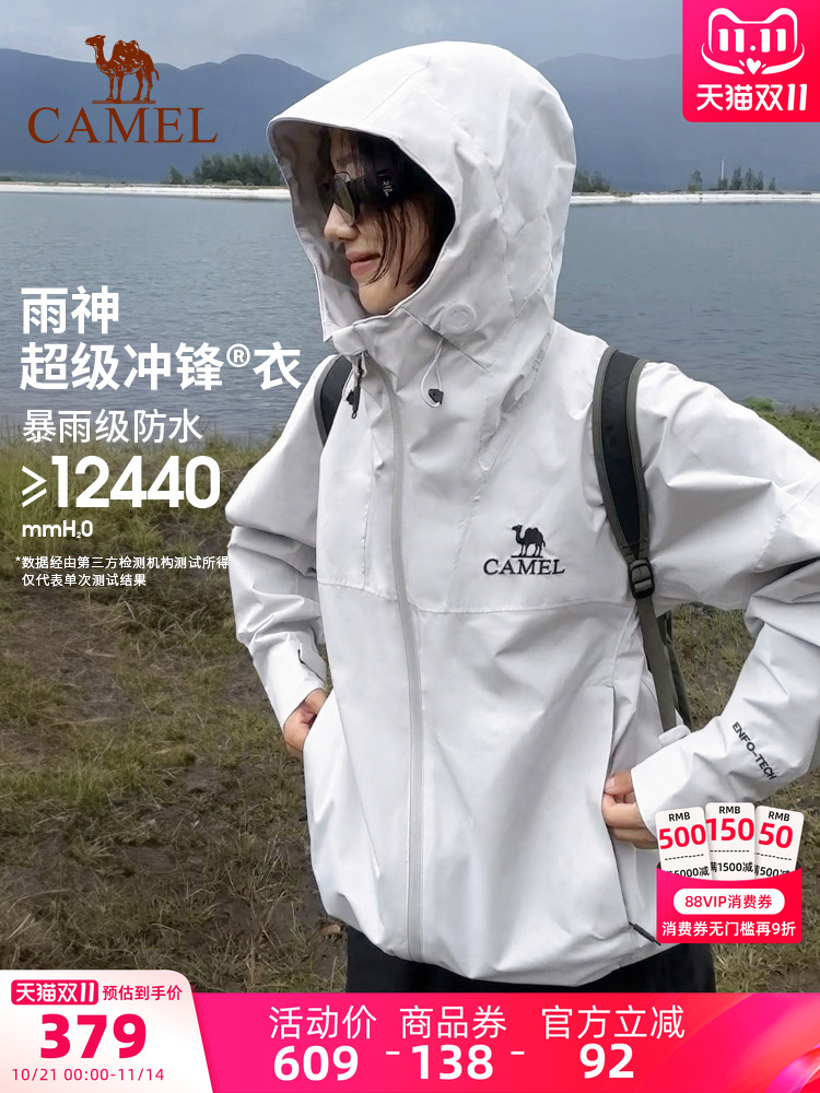 Camel Outdoor Rain God Jacket for Men and Women, Windproof, Waterproof, Lightweight Hardshell Jacket for Tibet Travel, Single-Layer Mountaineering Clothing