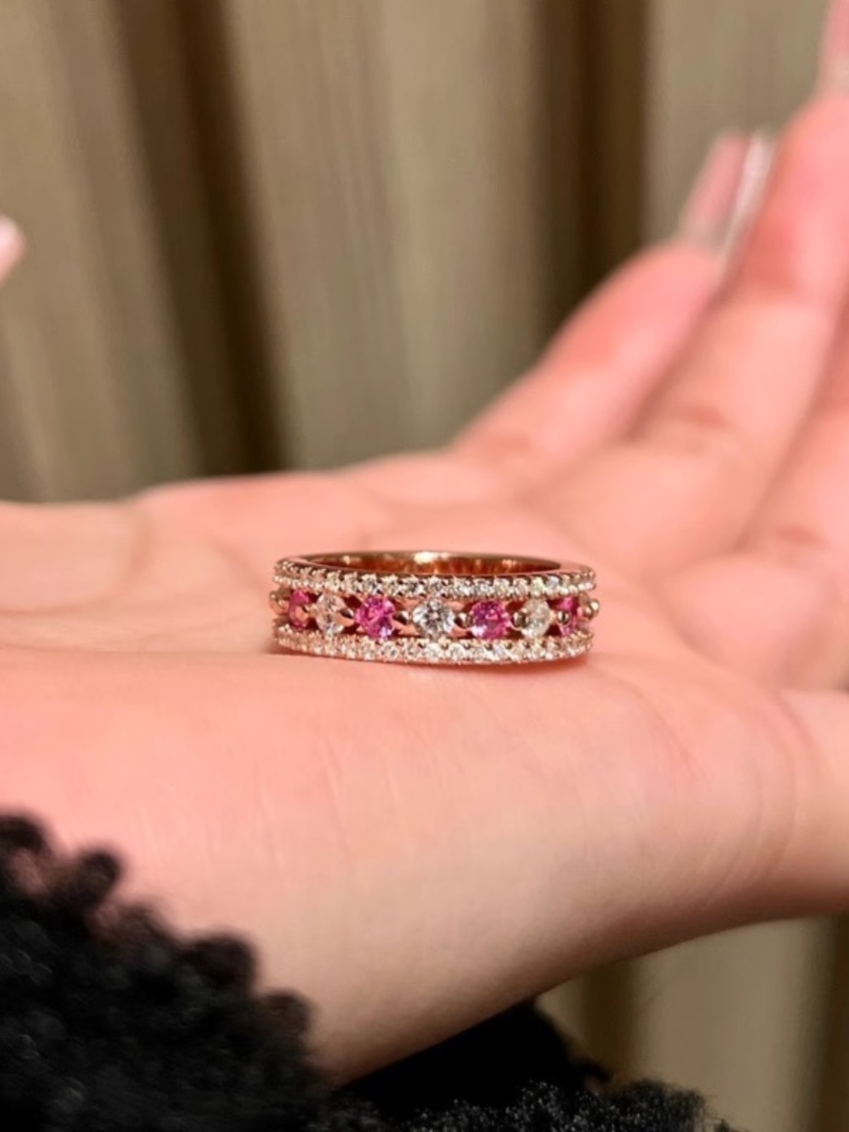 Lady Cultivated Pink Gemstone 925 Silver Plated 18K Gold Ultra Heavy Duty Row Ring (Really a Socialite's Dream)