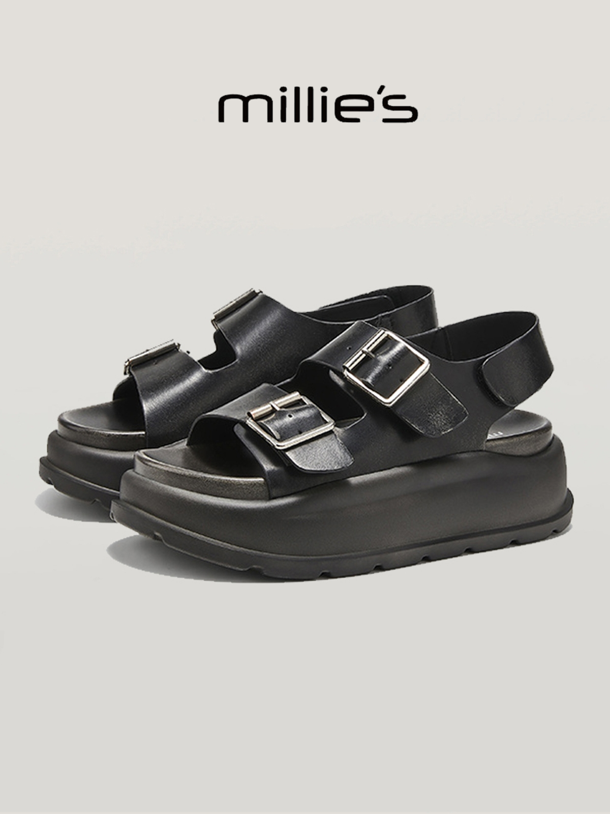 Millie'S/Millie's Open-Toe Platform Height-Increasing Super Popular Sandals with Leather Buckle 2025 Summer New Women's Casual Shoes