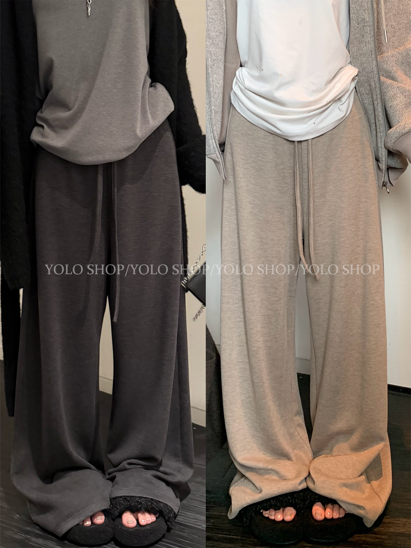 Yoloshop【Warm and Cozy Prelude】Wool Lazy and Relaxed Loose Casual Pants for Women, Autumn and Winter Straight-Leg Draped Pants