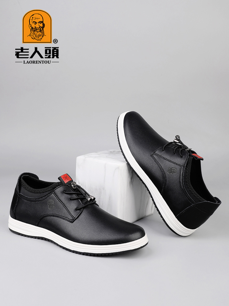 Old Man Head Brand Men's Shoes, Genuine Leather Breathable Casual Leather Shoes, Men's Slip-On Trendy Shoes, Soft-Soled Cowhide Shoes