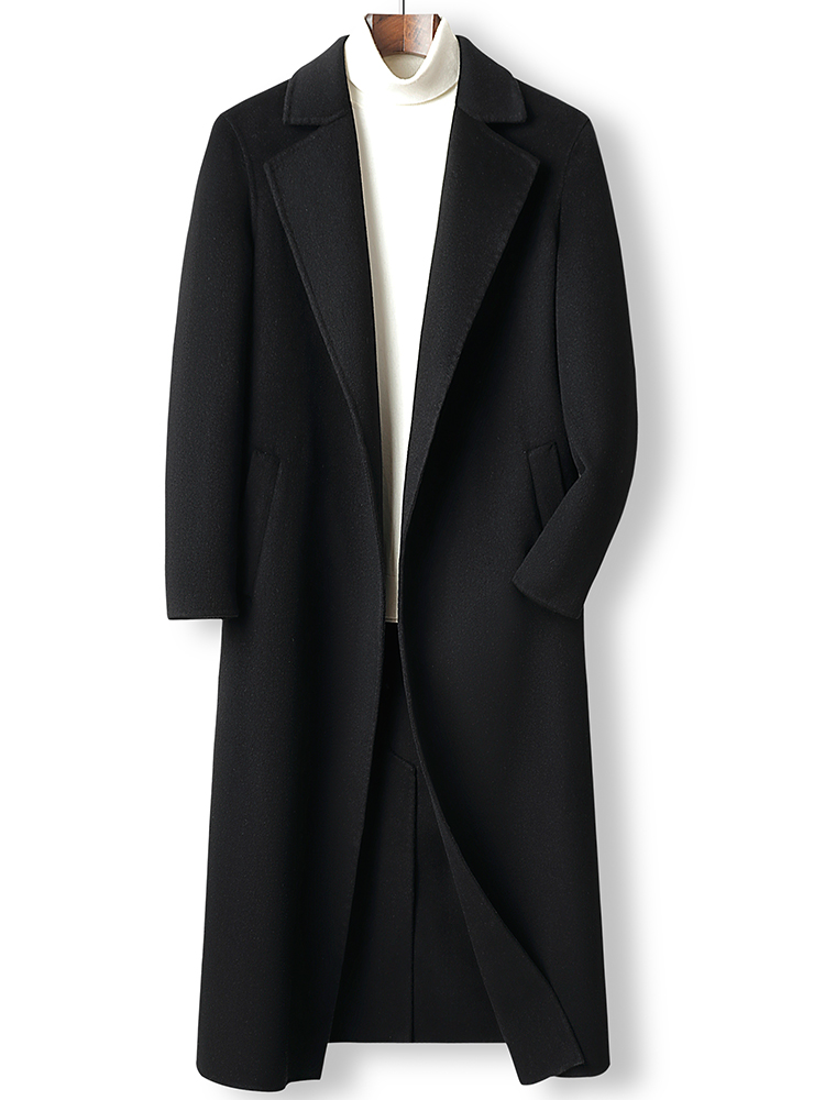 Catwalk Winter Extra-Long Over-The-Knee Men's 10% Cashmere Coat Without Buttons Trendy Fashion Belt Wool Overcoat Trench Coat