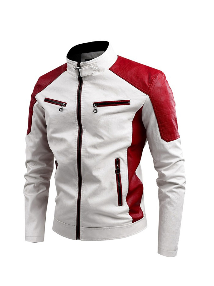 New Men's Leather Tops, Casual and Fashionable, Slim-Fitting Motorcycle Riding Spliced Leather Jackets, Stand-Up Collar Retro Jackets
