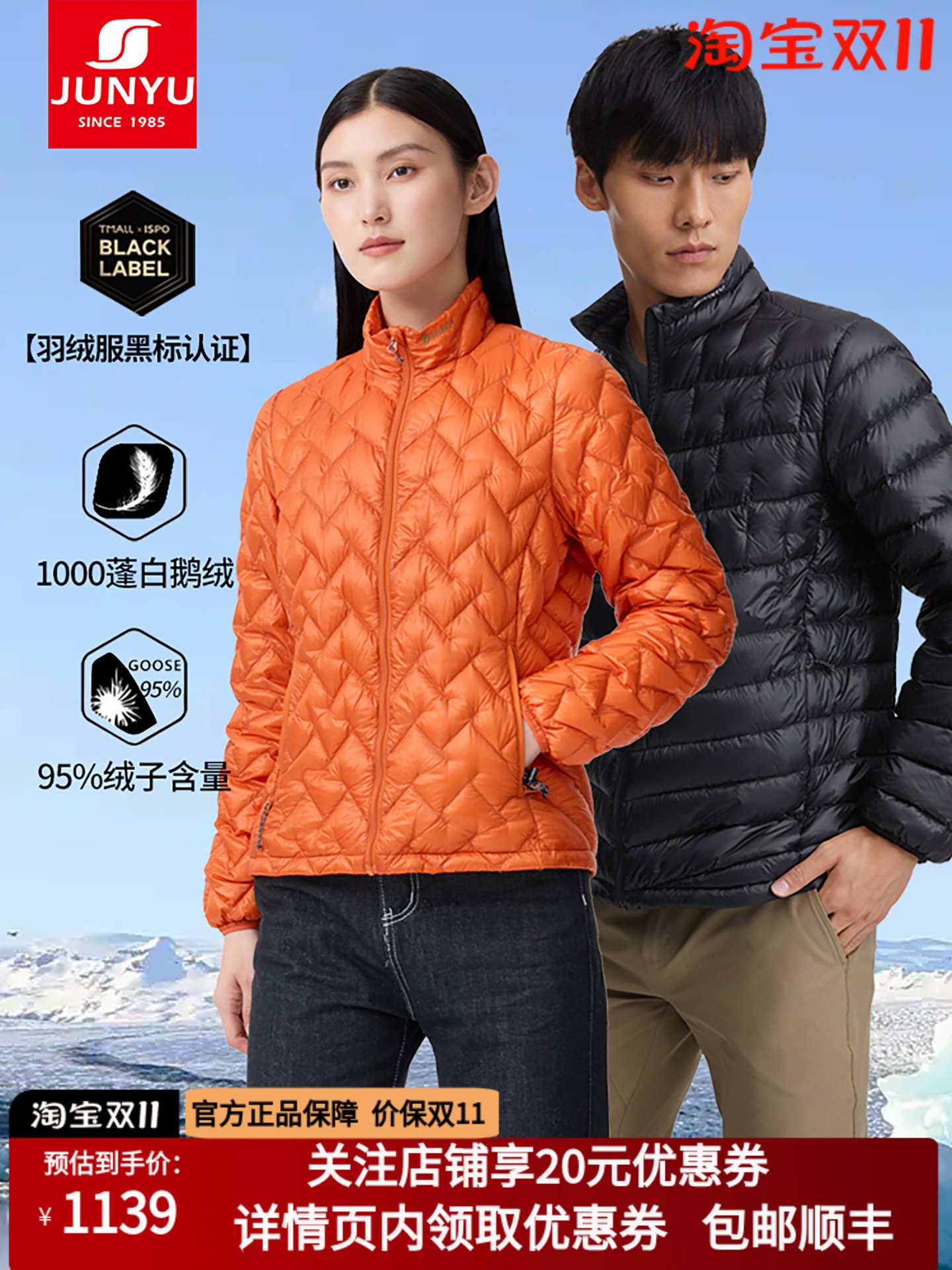 [Black Label] 1000 Fill Power White Goose down Junyu Outdoor down Jacket for Men and Women, Short Style, Stand Collar, Lightweight Winter Model E52113