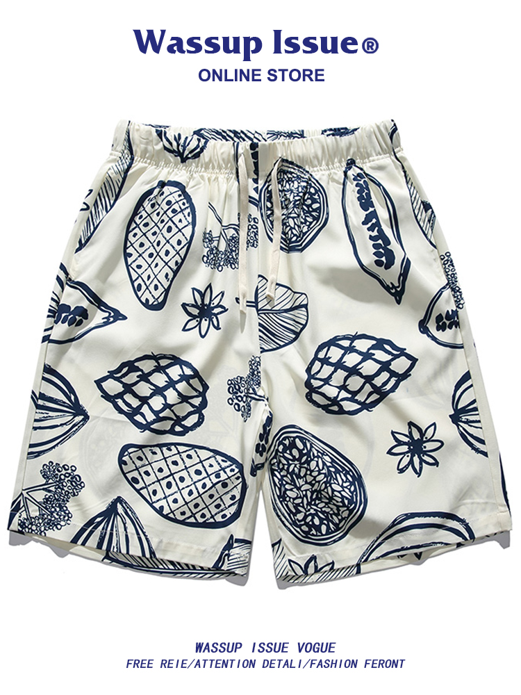 Wassup Issue Hawaiian Style Beach Casual Shorts Men's Summer Trendy Brand Loose Thin Sports Shorts