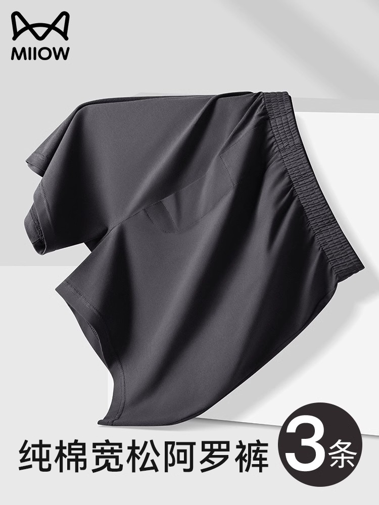 Catman Aro Men's Cotton Boxer Briefs Spring and Summer Thin Loose Large Size Men's Boxer Shorts Sleep Pants