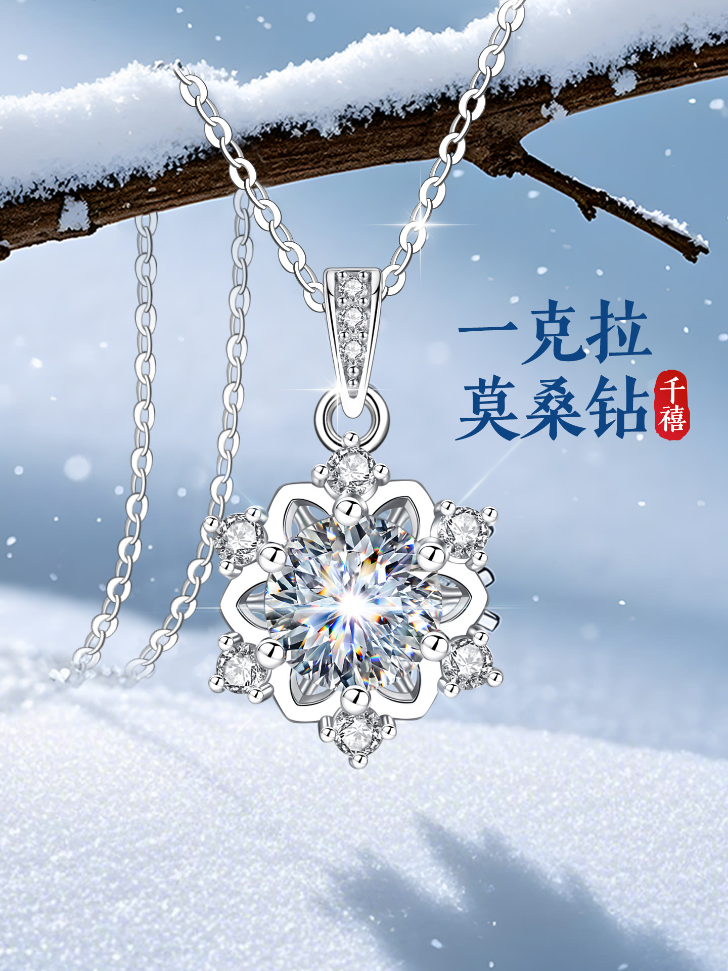 999 Pure Silver Snowflake Necklace for Women 2025 New Model Ladies 999 Pure Silver One Carat Moissanite Diamond Pendant for Girls