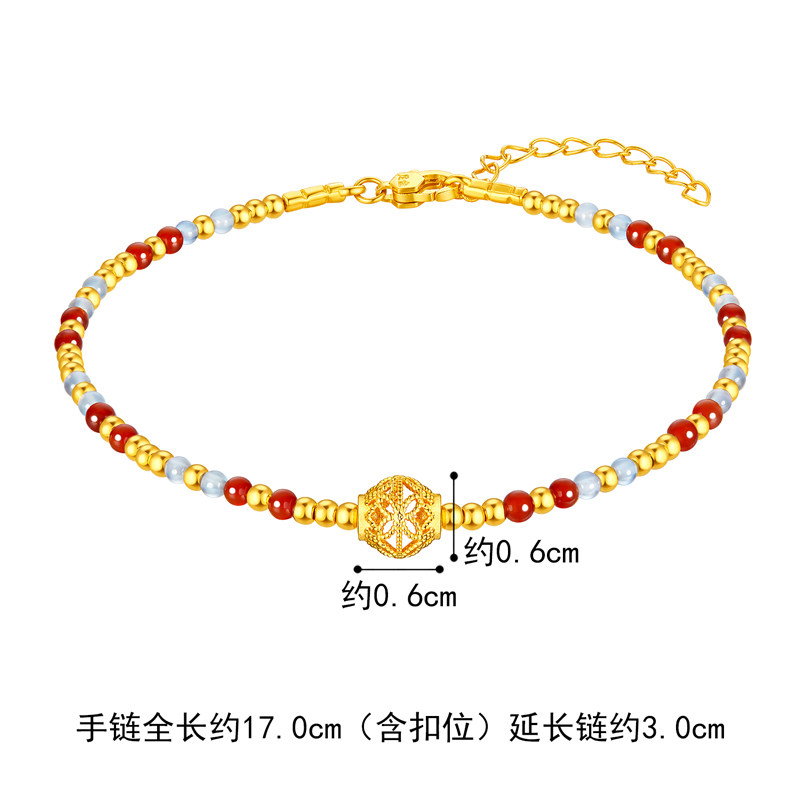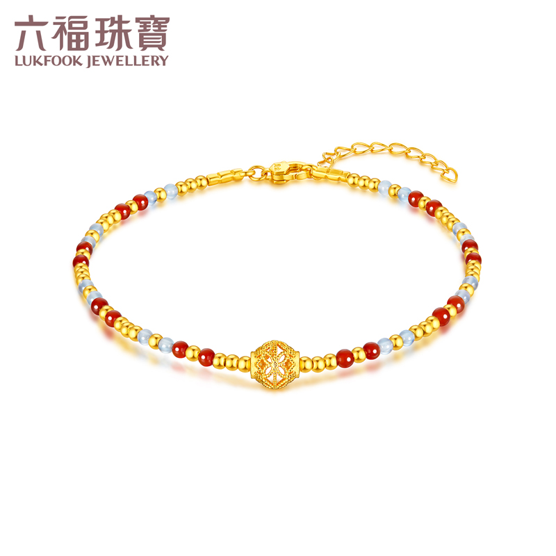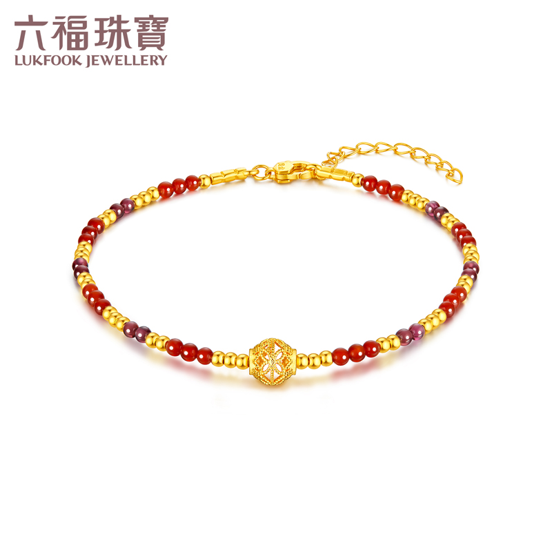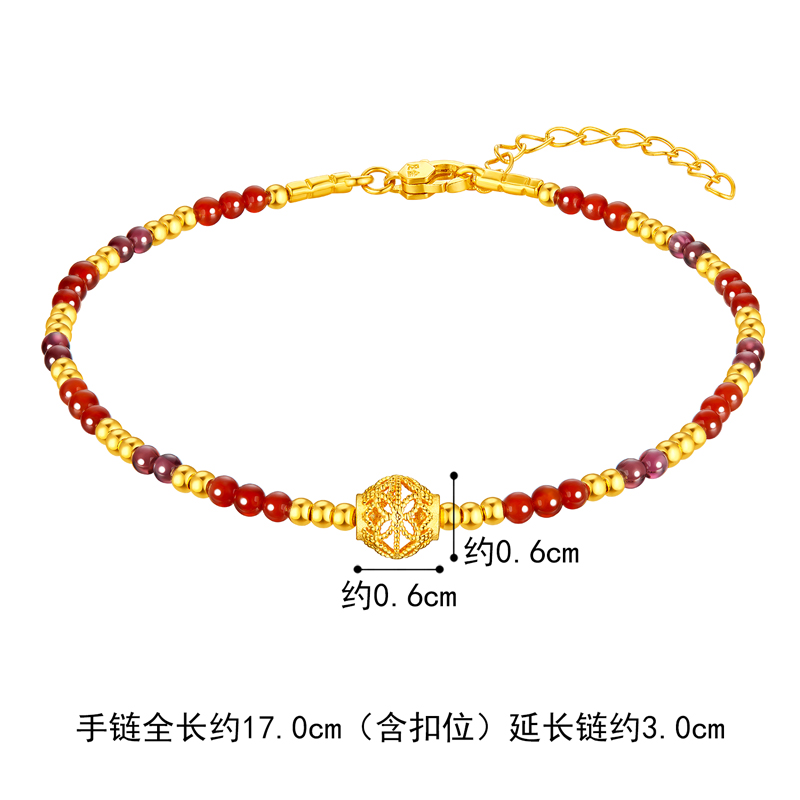 Lukfook Jewelry Filigree Gold Beads Gold Bracelet Women's Garnet Hard Gold Chalcedony Hand Beads Pricing Gja0010Ds
