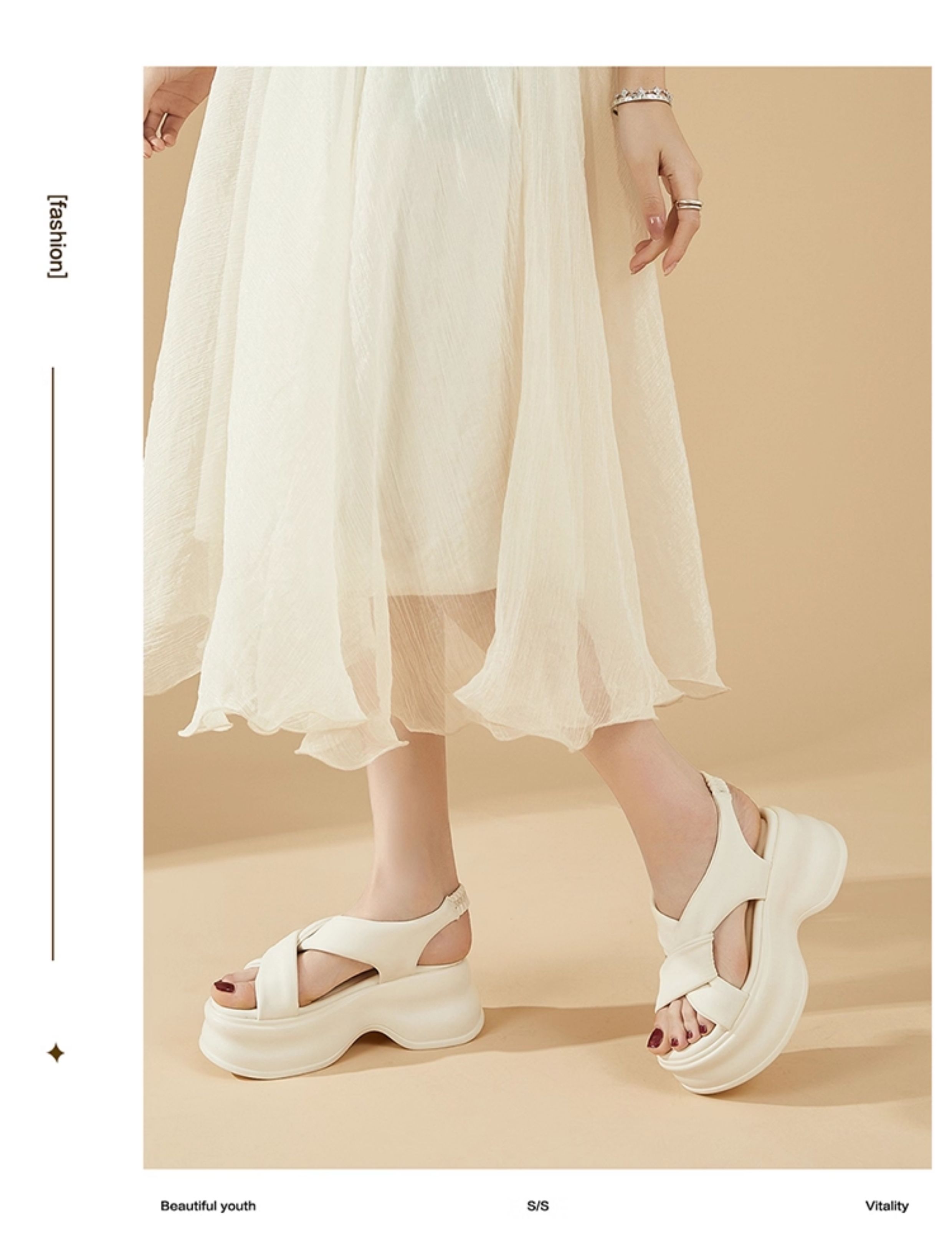 Daphne Thick-Soled Sandals for Women, Wedge Heel, 2025 New Platform Shoes, White Summer Platform Shoes, Height-Increasing Women's Shoes for Summer