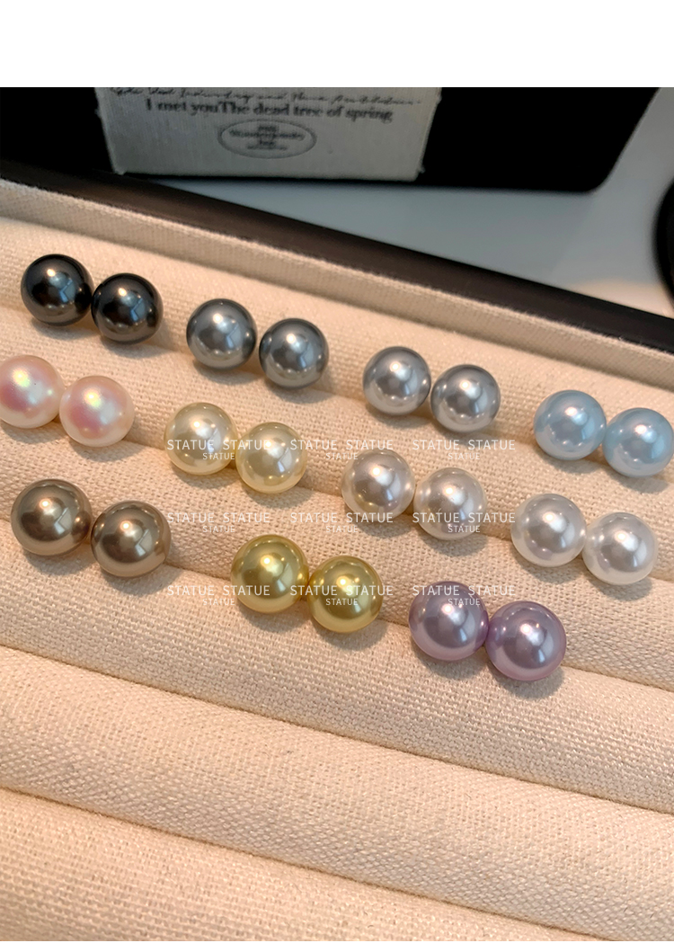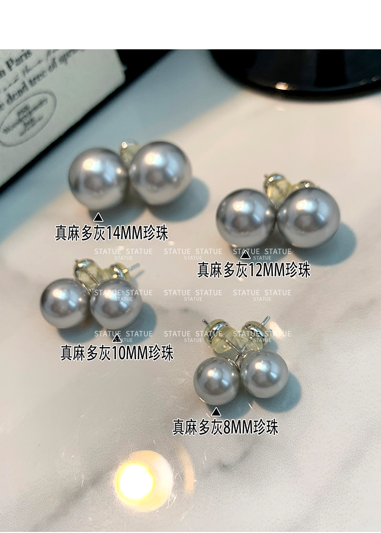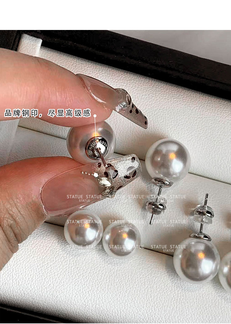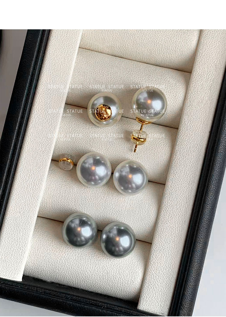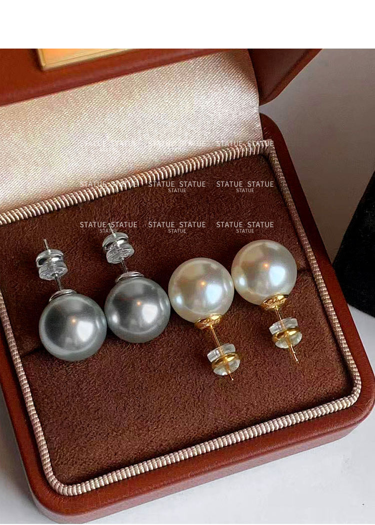 999 Pure Silver Genuine Australian White Pearl Stud Earrings for Women, High-End Trendy Gray Earrings