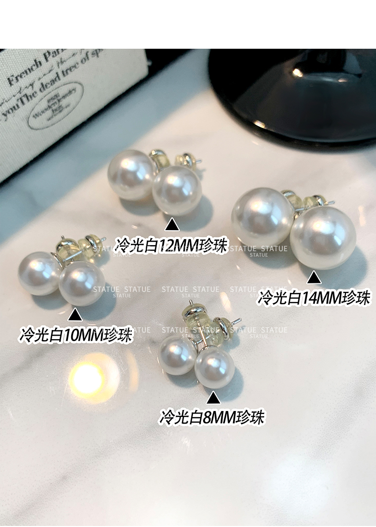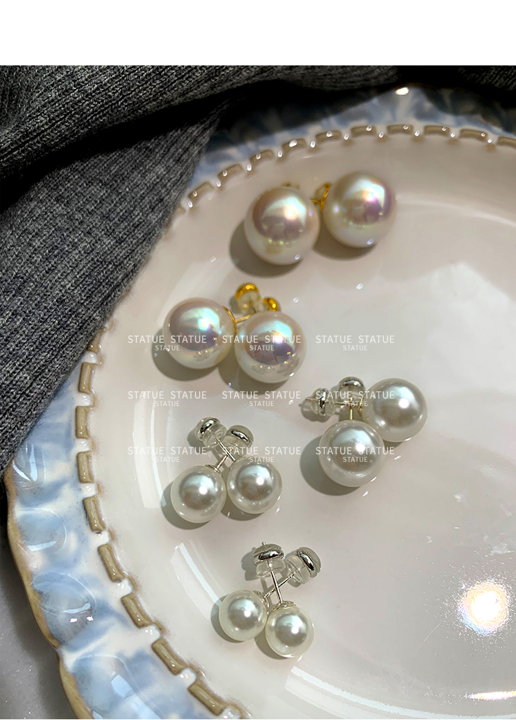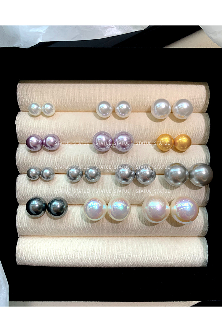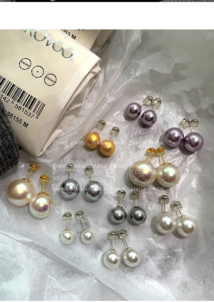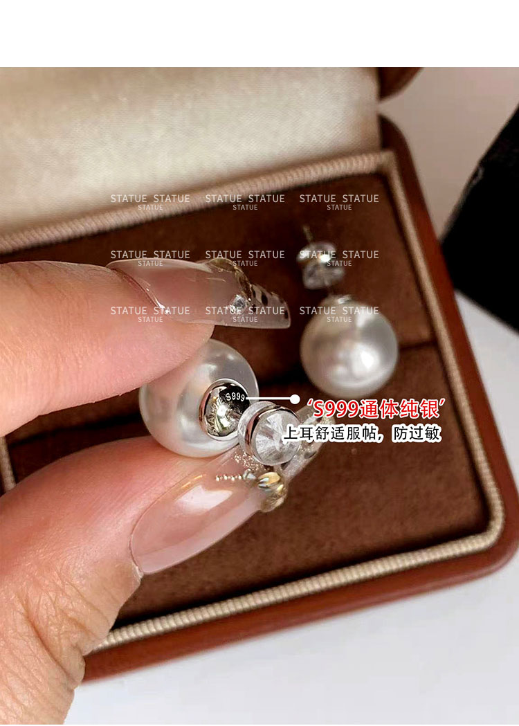 999 Pure Silver Genuine Australian White Pearl Stud Earrings for Women, High-End Trendy Gray Earrings