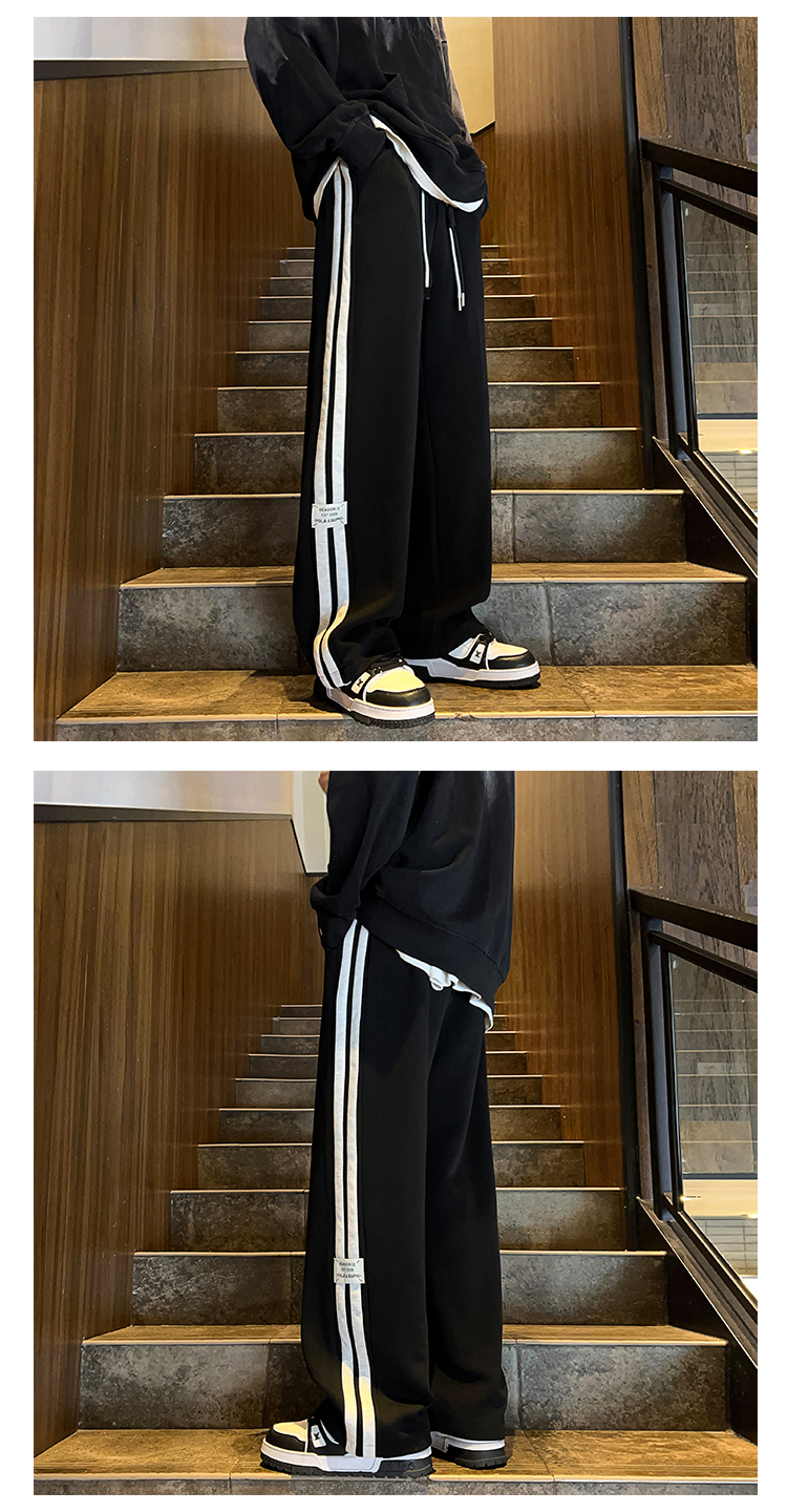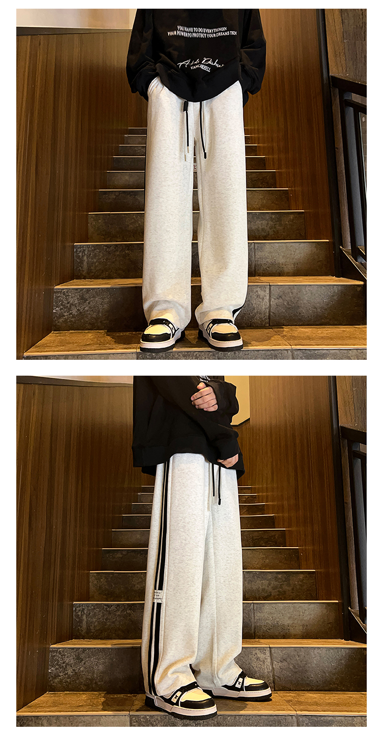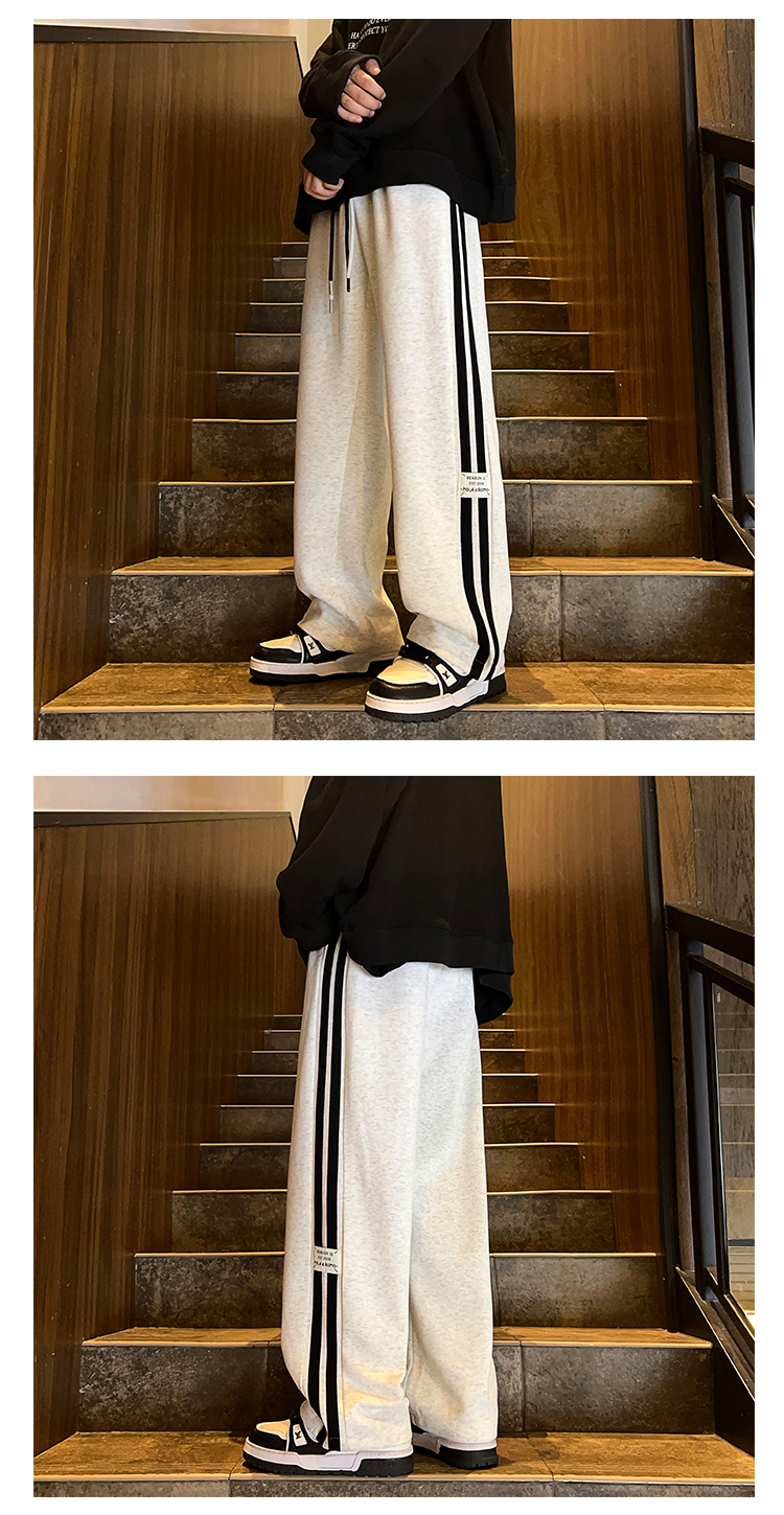 Gray Heavyweight Sweatpants for Men, Spring and Autumn Trendy Brand High Street Striped Pants, Straight Loose Trendy Sports Casual Long Pants