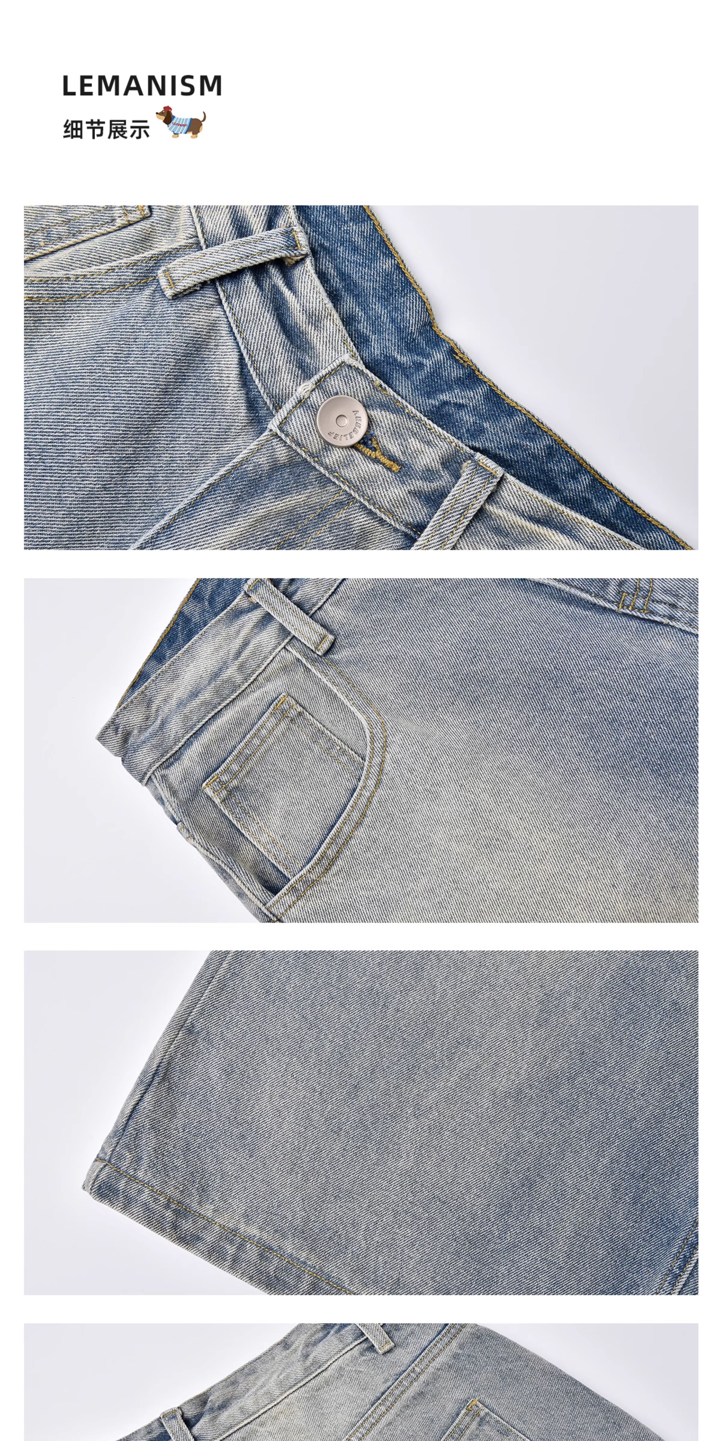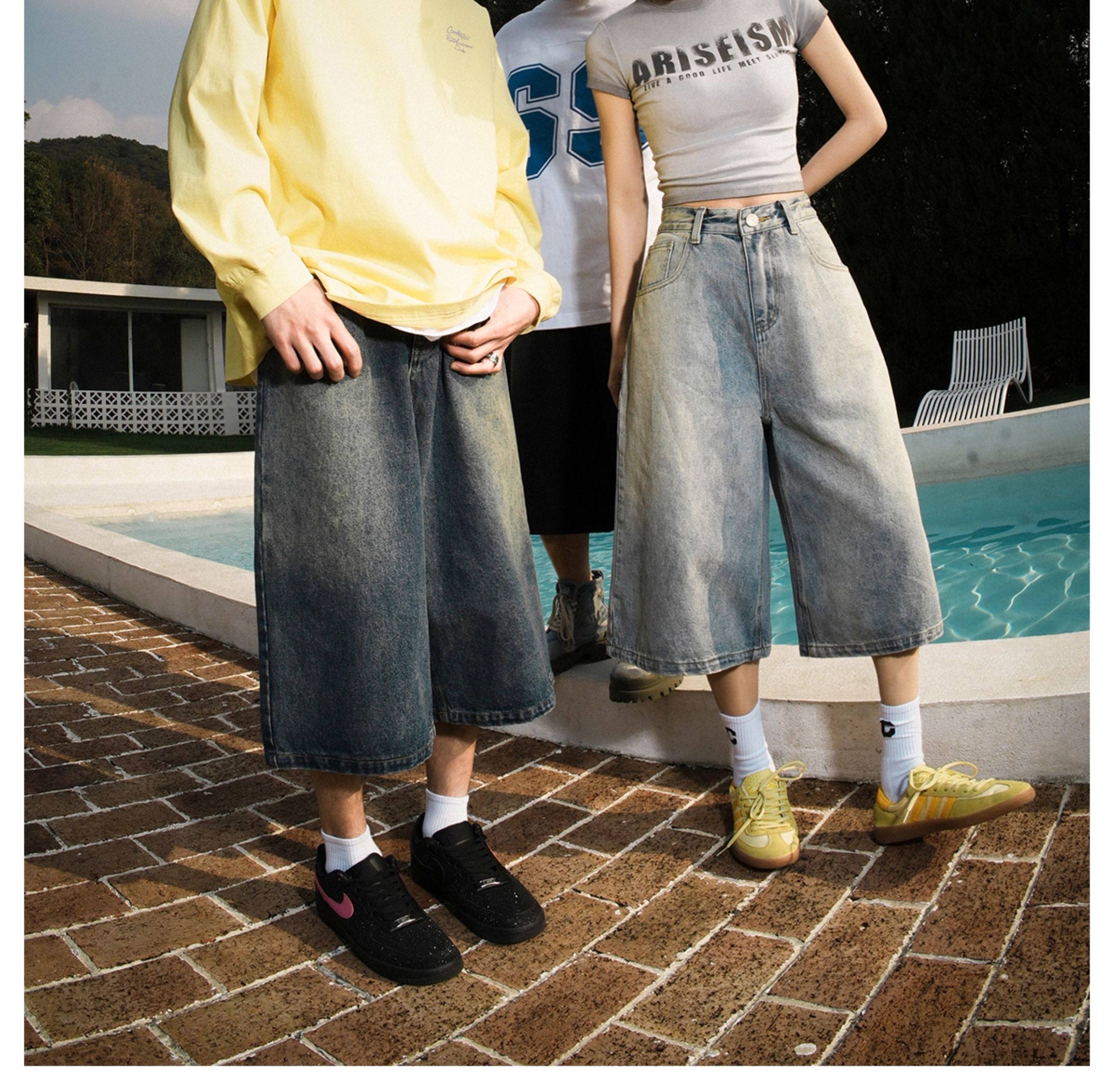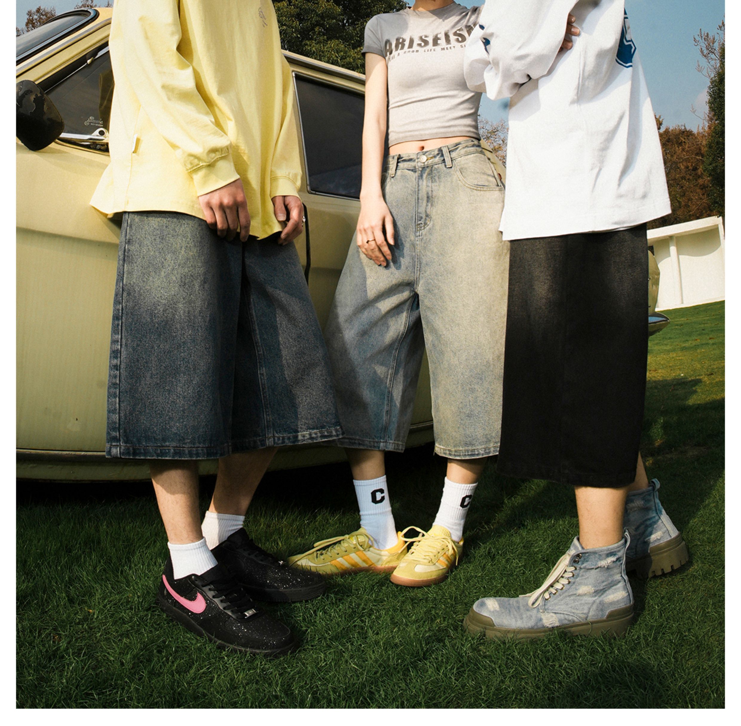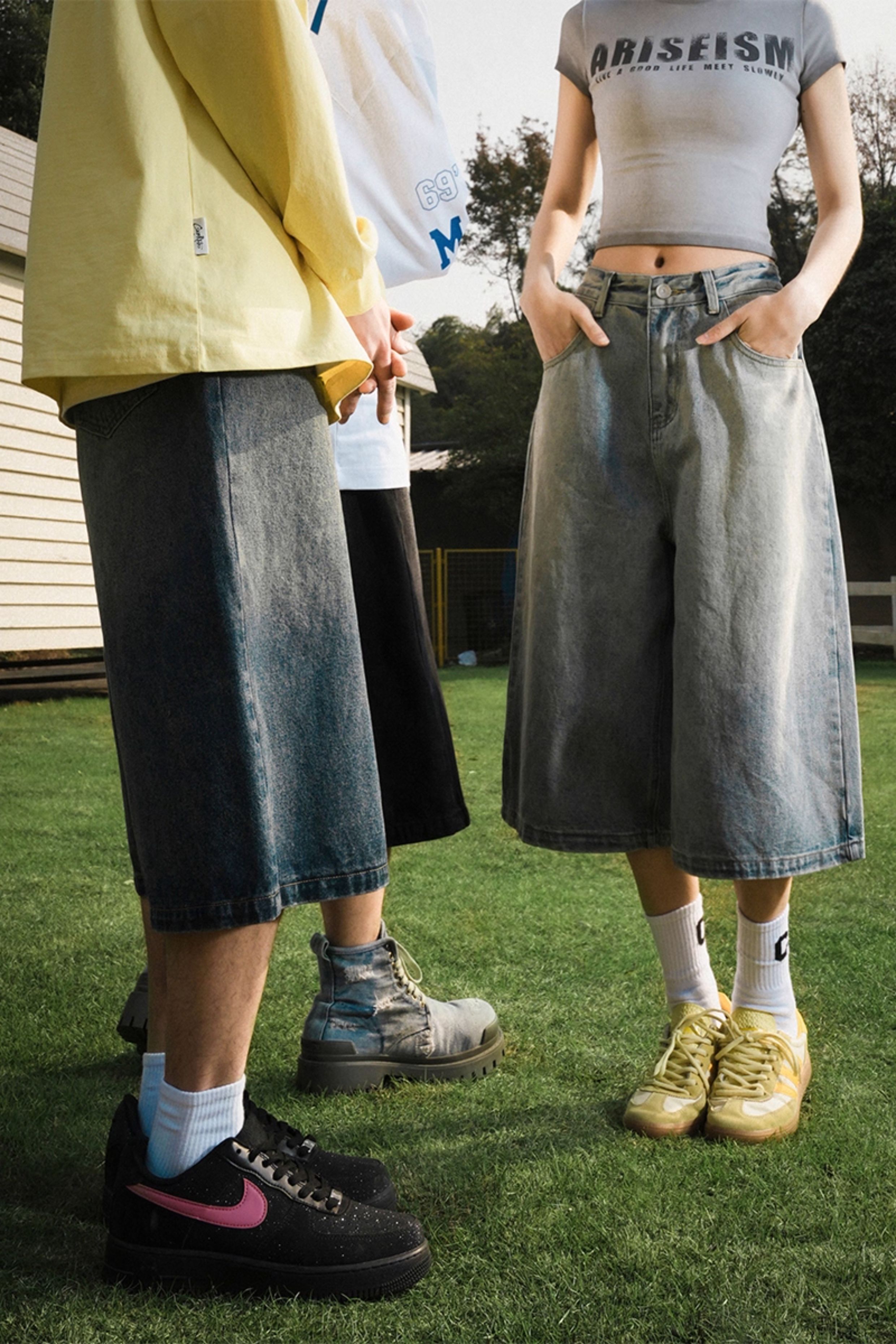 Lemanism American-Style Washed Denim Shorts Men's Summer Casual Mid-Length Pants Cropped Pants Trendy Brand Couple Straight-Leg Pants